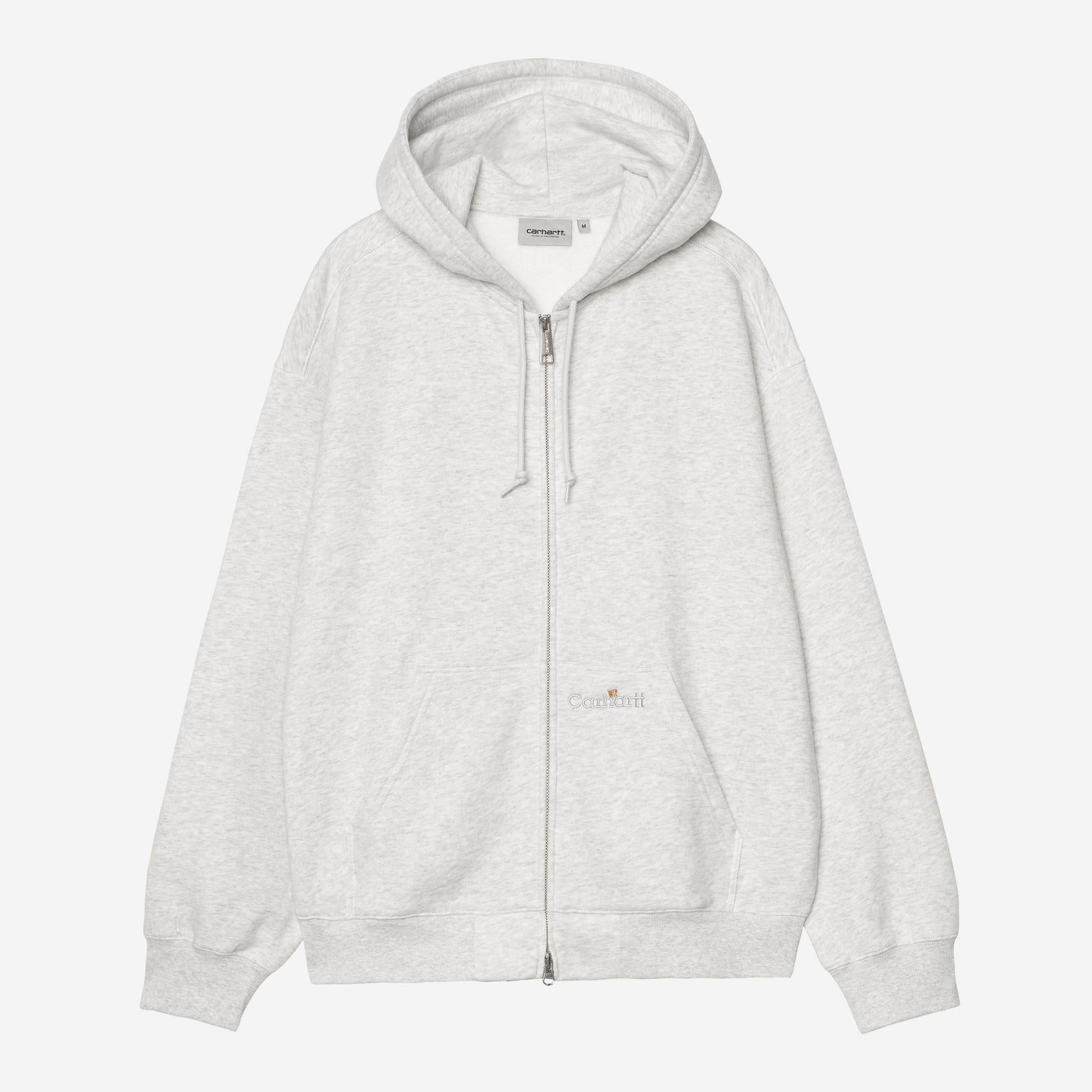 Carhartt WIP Mens Hooded WIP Label Sweat Jacket | Ash Heather