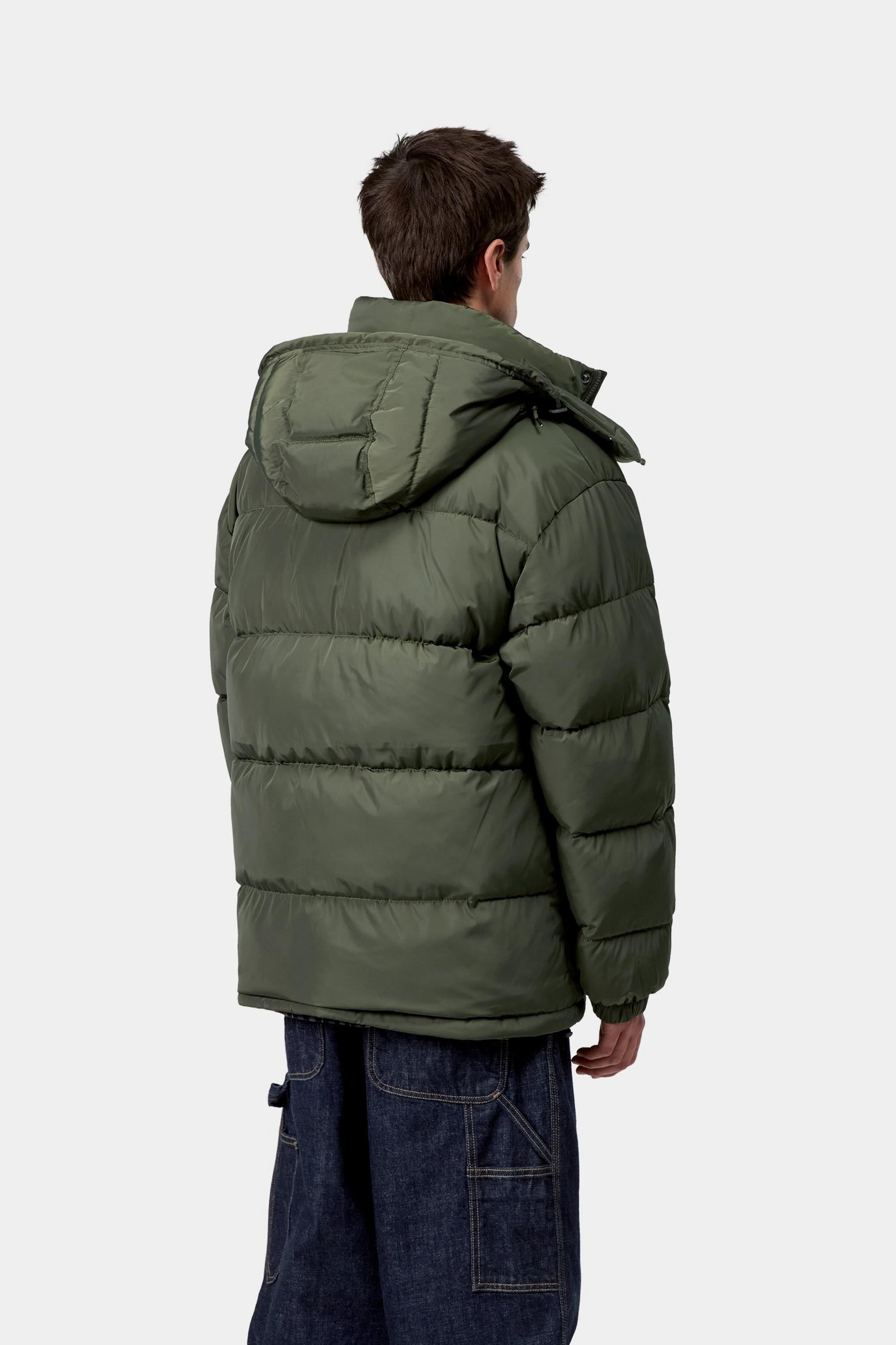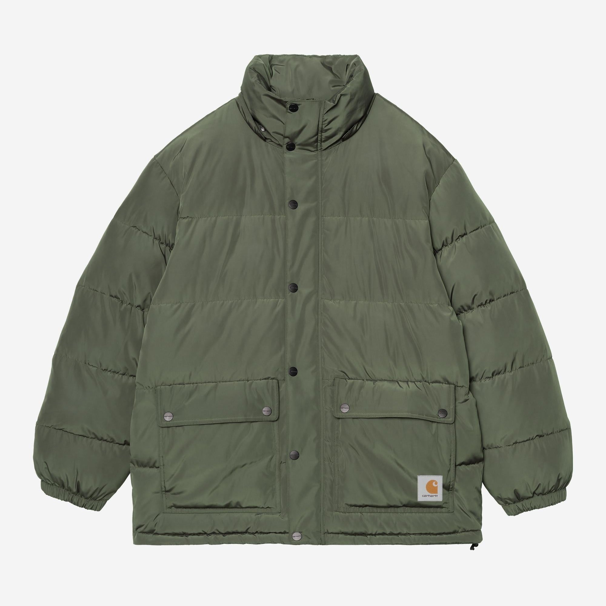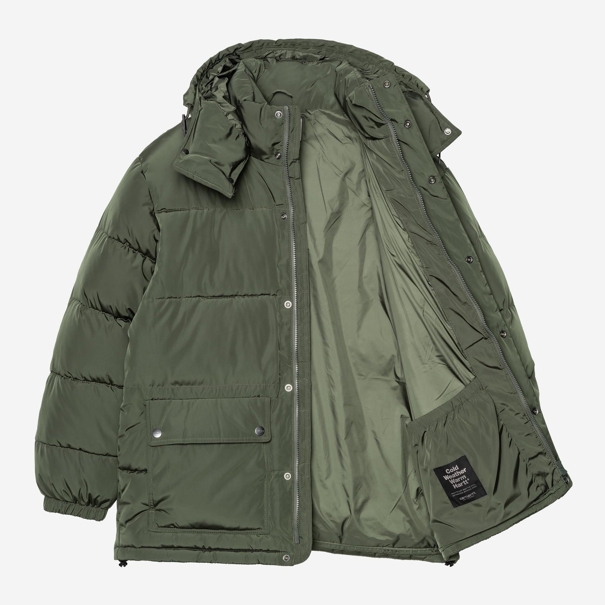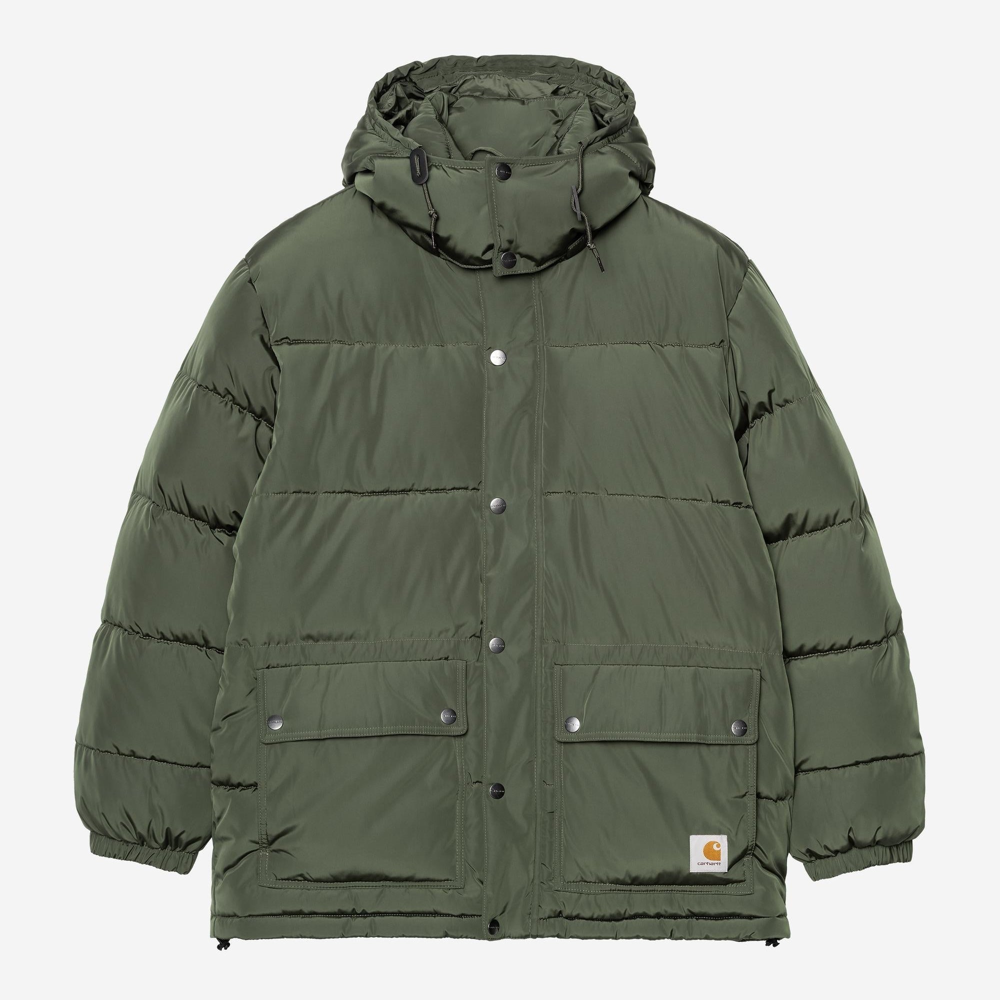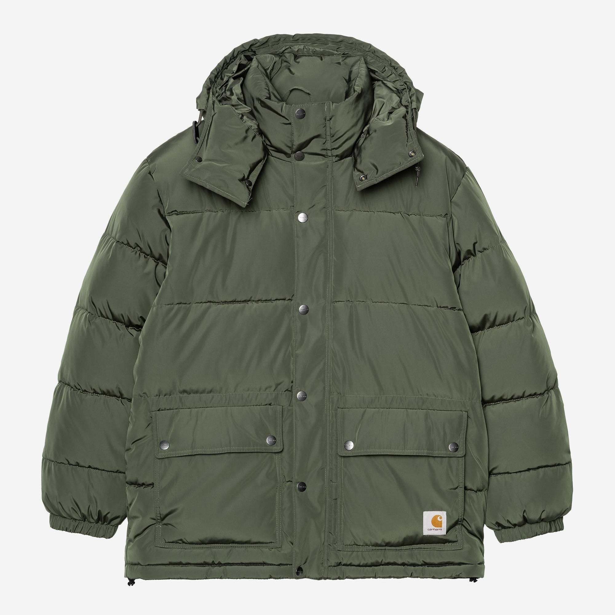 The Carhartt WIP Brent Jacket is made from lightweight polyester fabric and is padded with artificial down. It also features an adjustable and removable hood. Two patch pockets appear on the front. A woven Square Label completes the design.