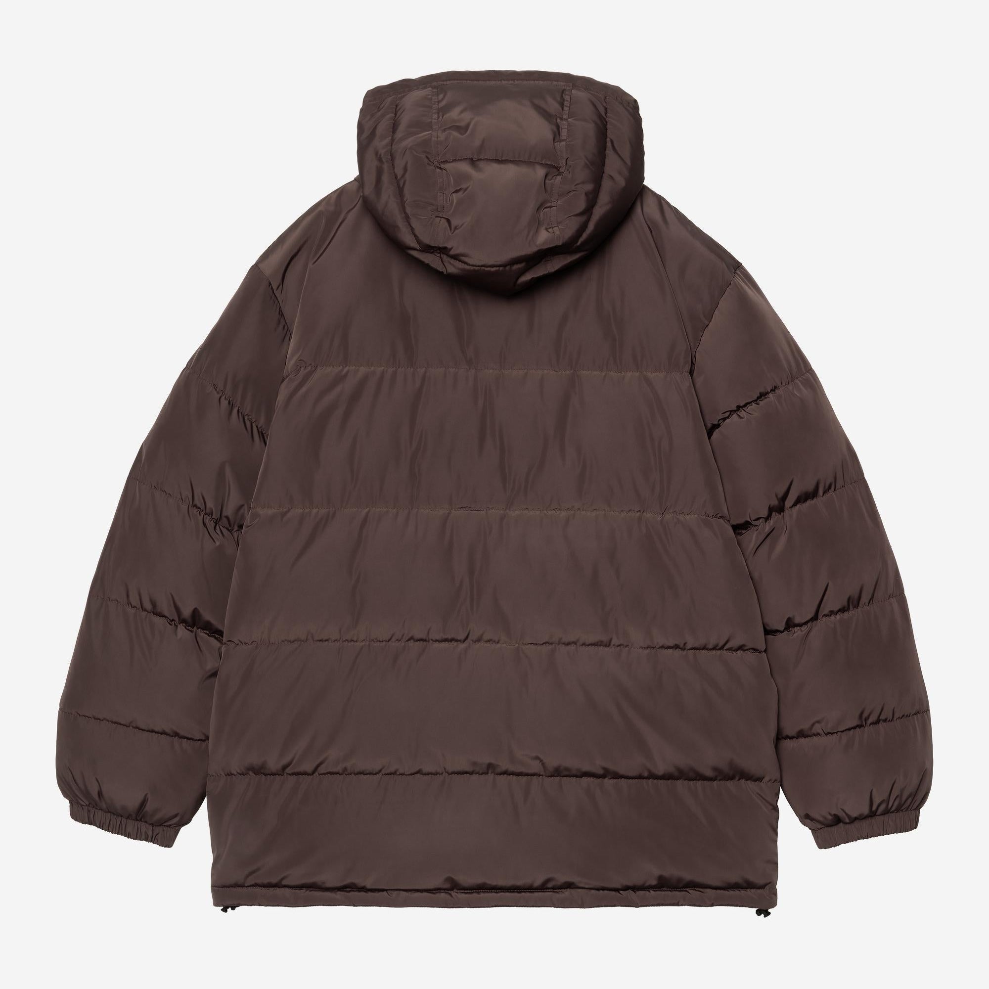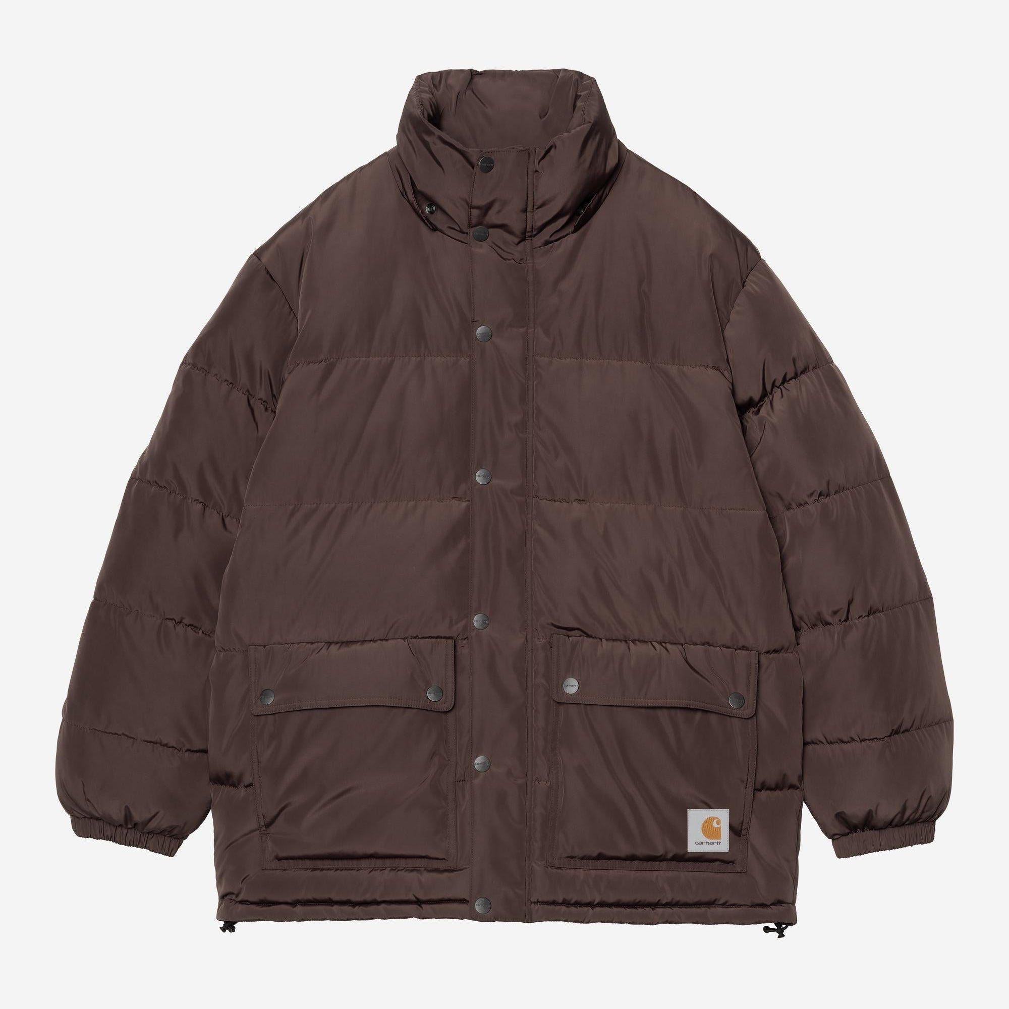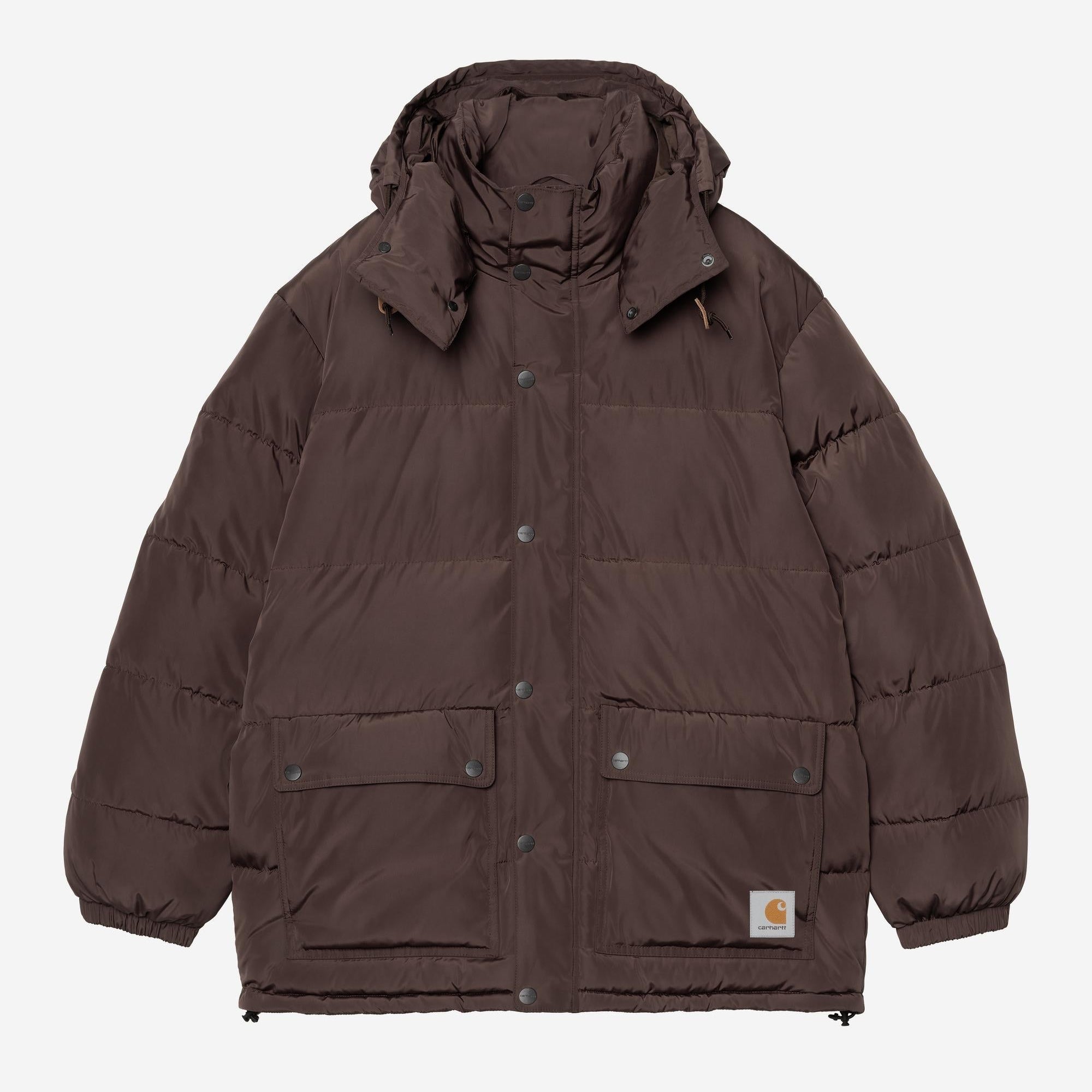 The Carhartt WIP Brent Jacket is made from lightweight polyester fabric and is padded with artificial down. It also features an adjustable and removable hood. Two patch pockets appear on the front. A woven Square Label completes the design.