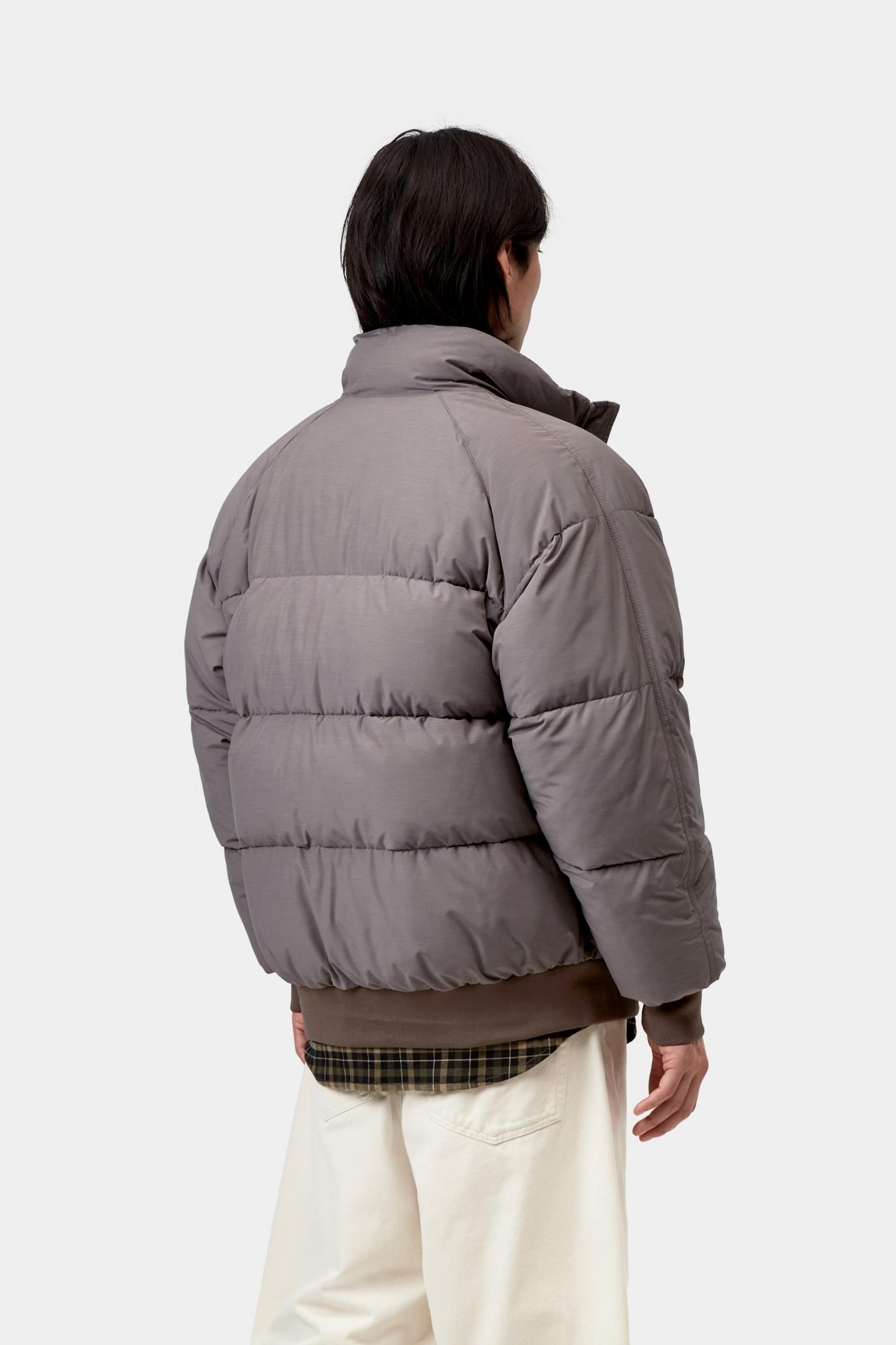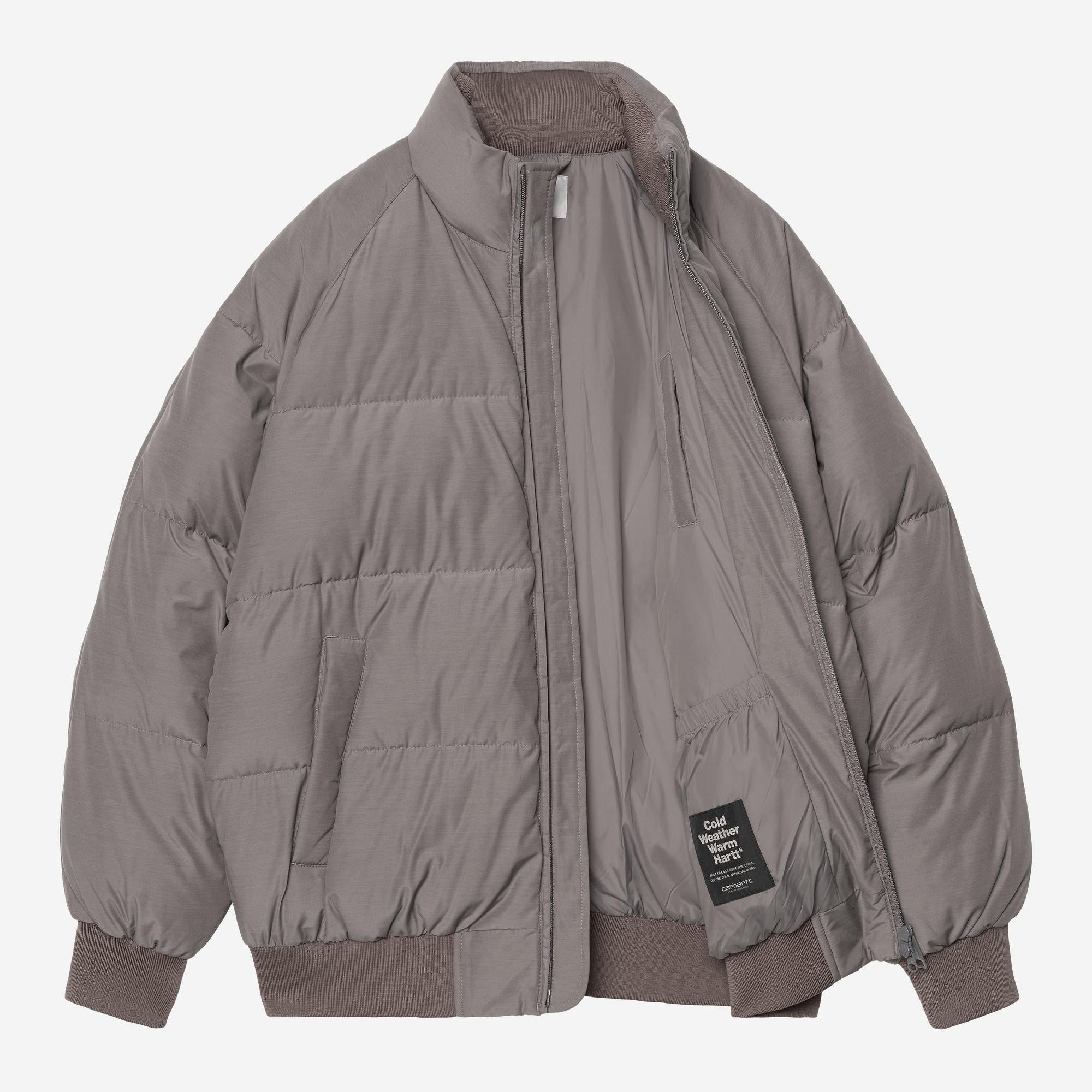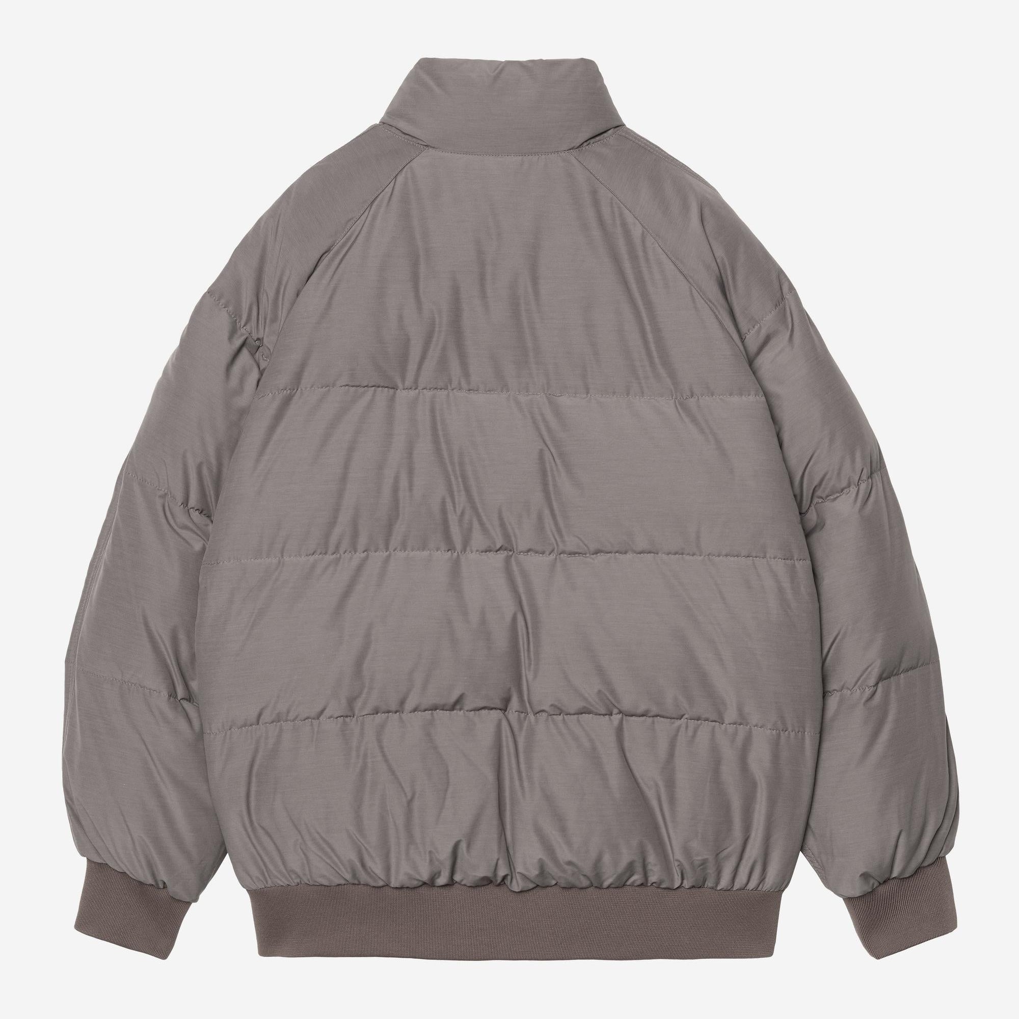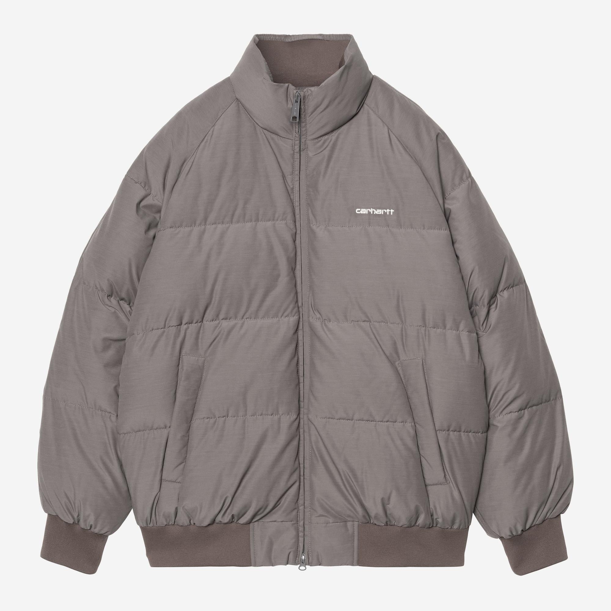 The Carhartt WIP Nebraska Jacket is made from lightweight poly-cotton fabric which has been padded with artificial down for warmth. The jacket also has water-repellent qualities for inclement weather. A rib-knit collar, bottom band, and cuffs offer a cinching, insulating fit. An embroidered Script Logo appears on the chest.