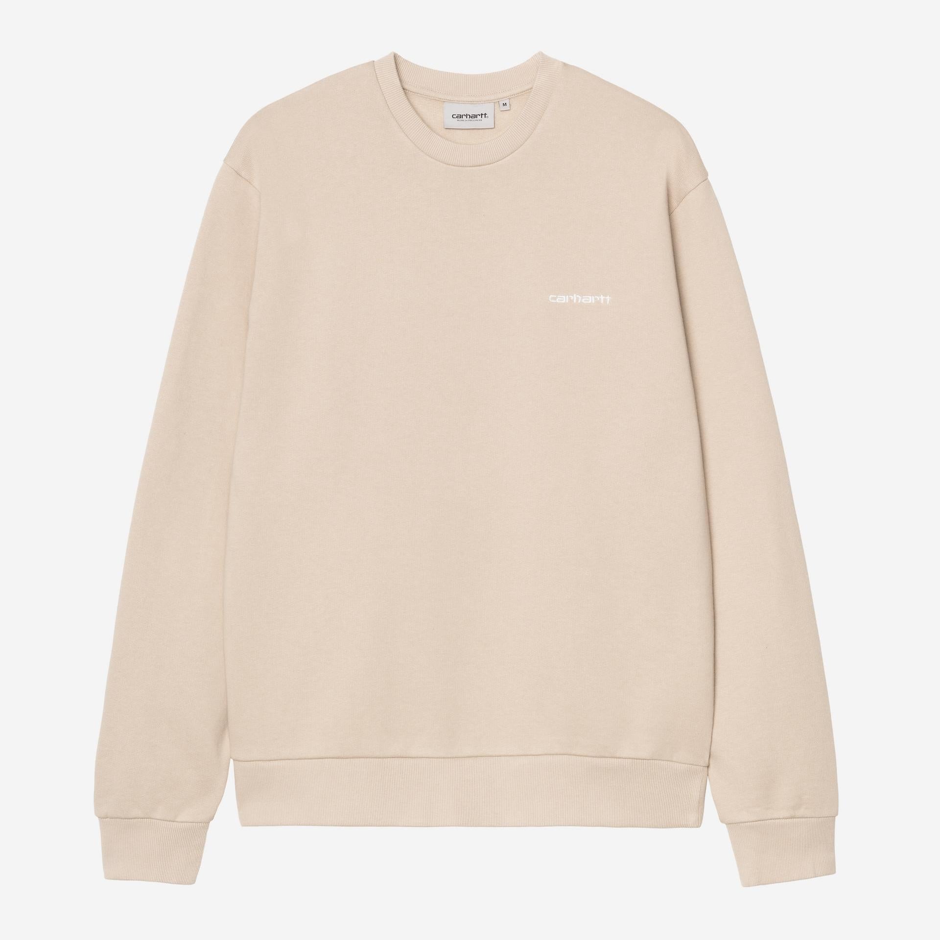 Carhartt WIP Mens Script Embroidery Sweat Top | Fleur De Sel / White