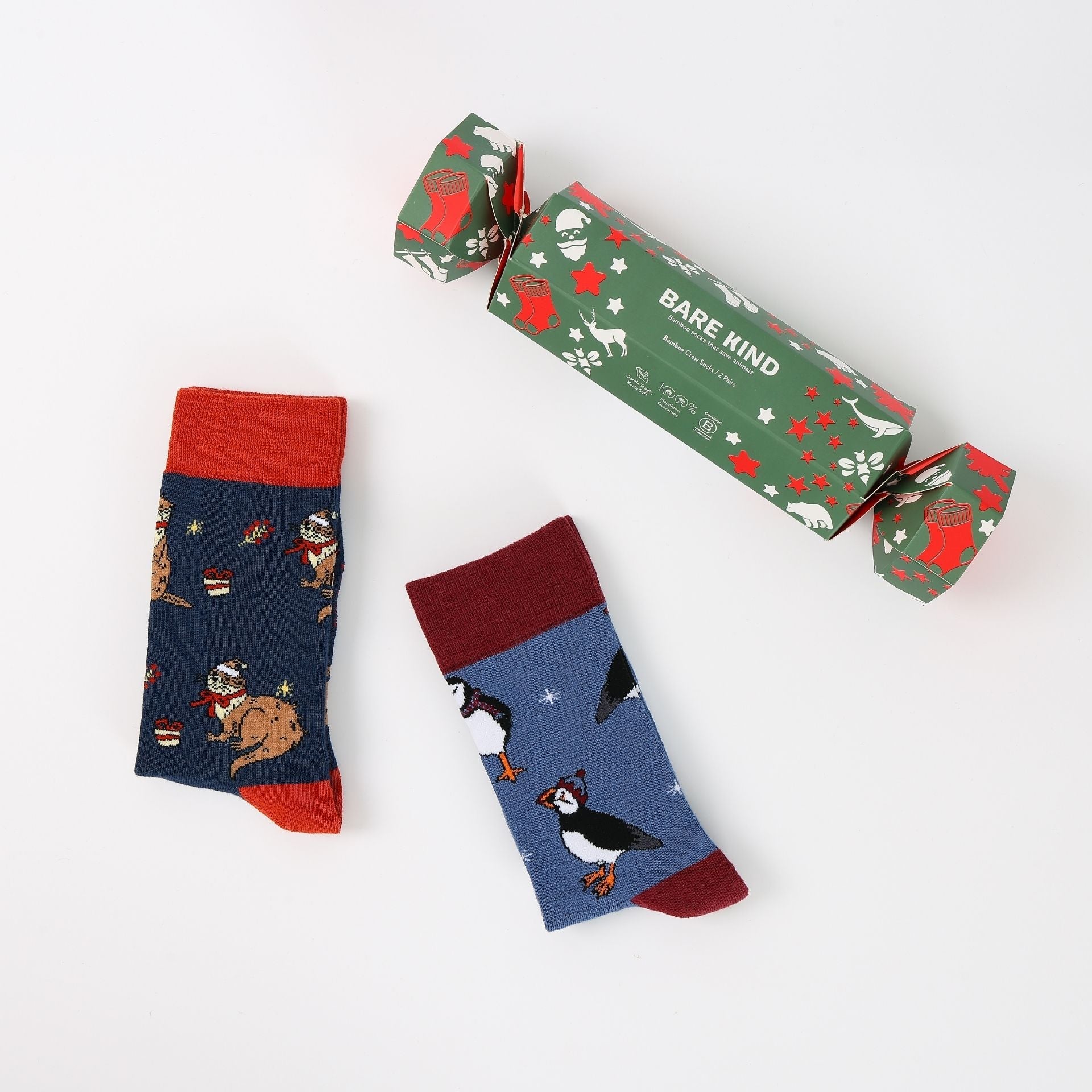 Bare Kind Christmas Cracker Otter & Puffin Bamboo Socks | 2 Pack