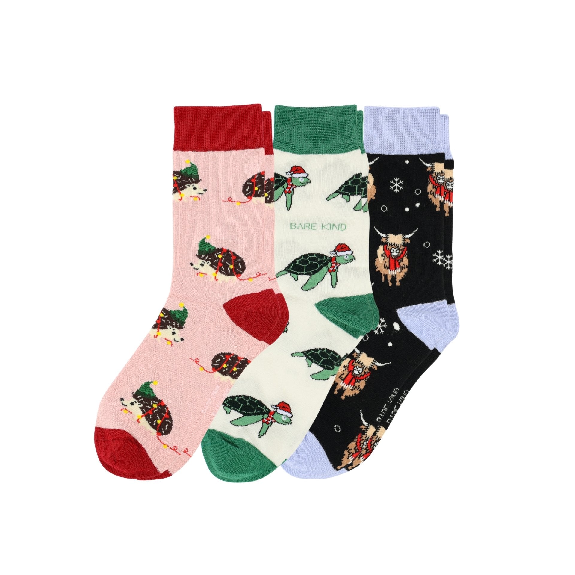 Bare Kind Christmas Stocking Pink & Green Bamboo Socks | 3 Pack