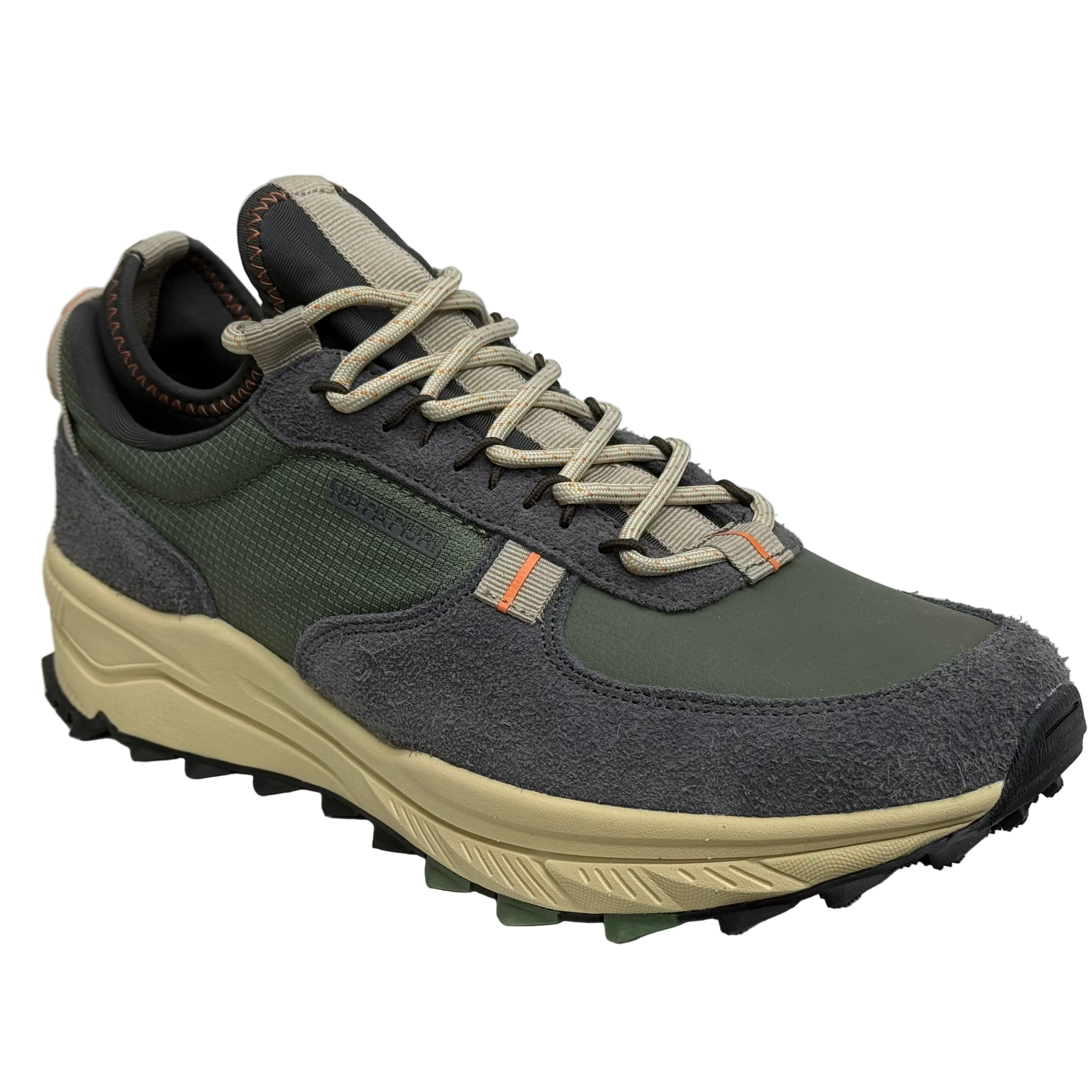Trail-inspired sneakers with an urban attitude. Built with a durable upper in technical fabric and black suede, they feature a sock-like construction for easy, comfortable wear. Contrasting grey accents on the laces and heel add a refined touch, while the two-tone raised sole with a rugged tread delivers comfort and grip—perfect for everyday use.