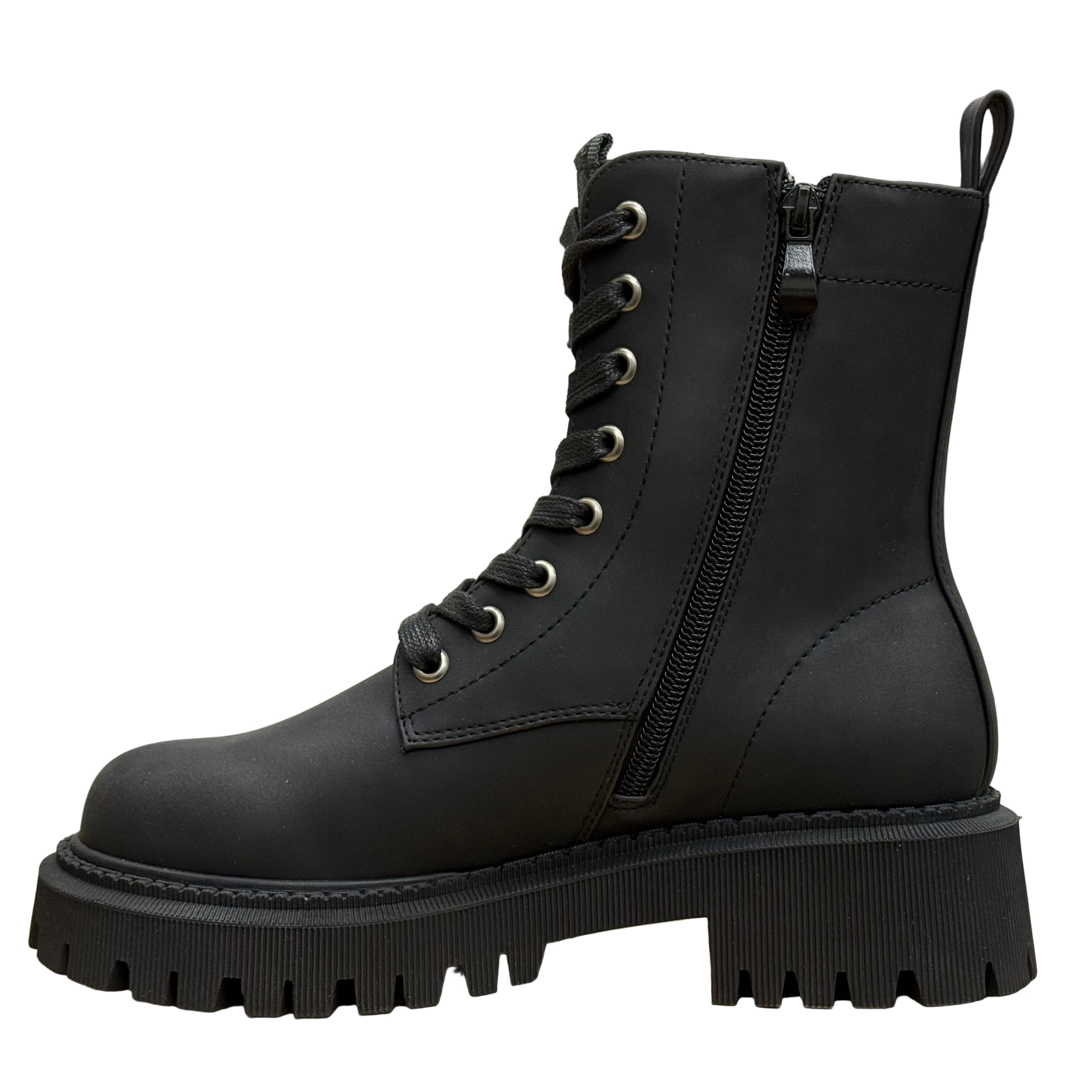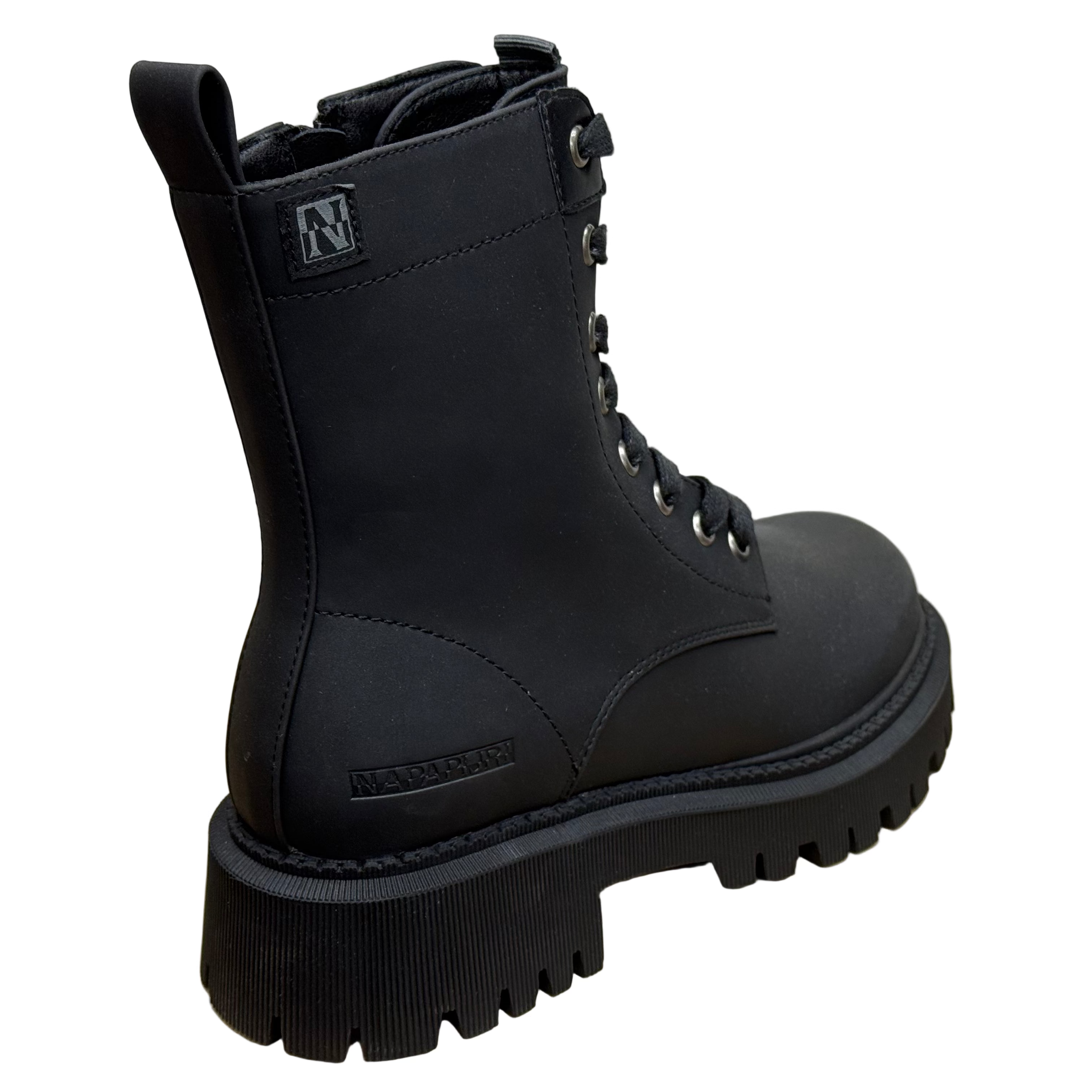 Step out in style with the Napapijri Women's Classic Ankle Boot in sleek black. Featuring a timeless lace-up design and a chunky gum sole with bold, deep treads, these boots bring both edge and grip to your every adventure.