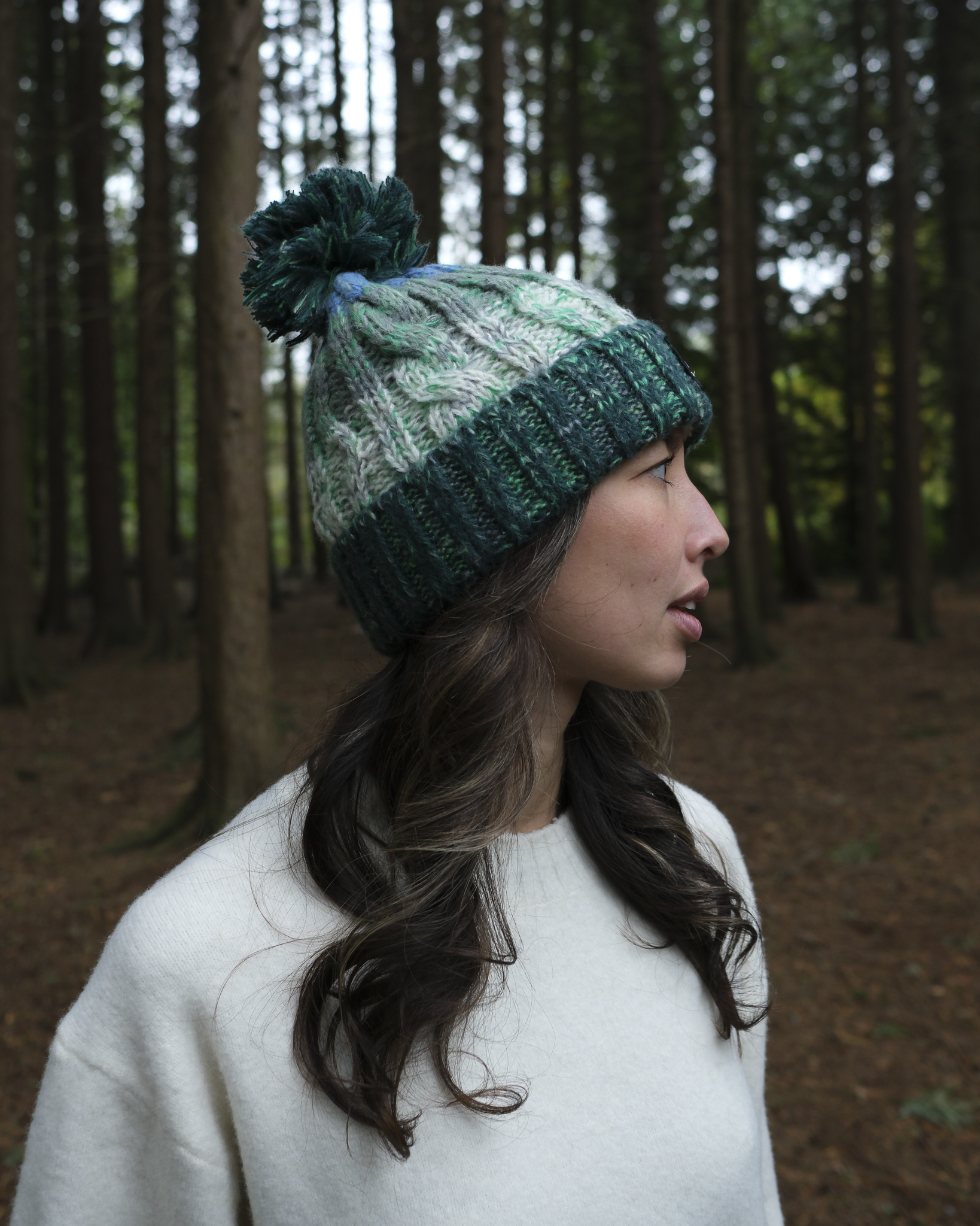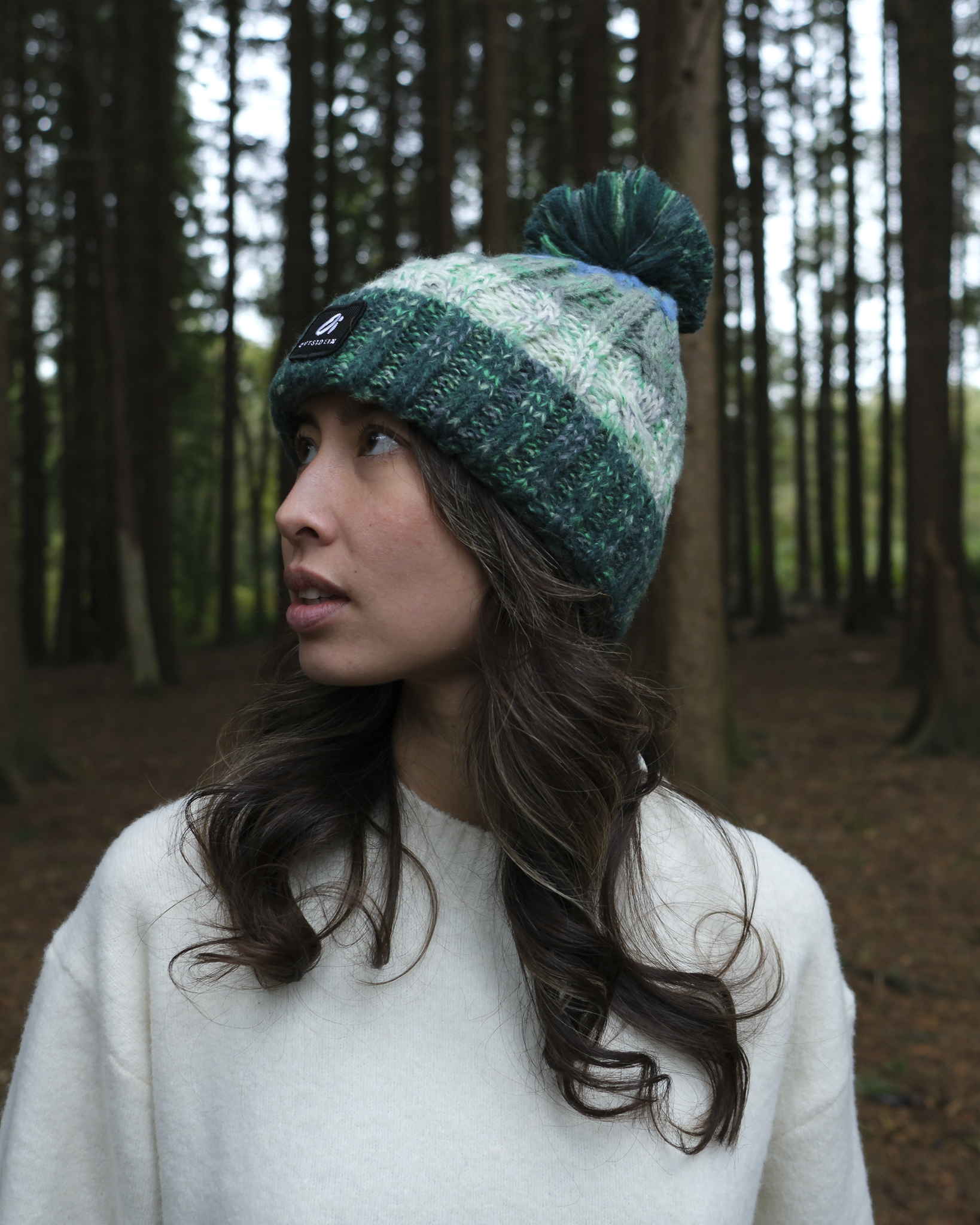 The Pine Forest Pom is built for crisp adventures, blending rugged warmth with natural tones.