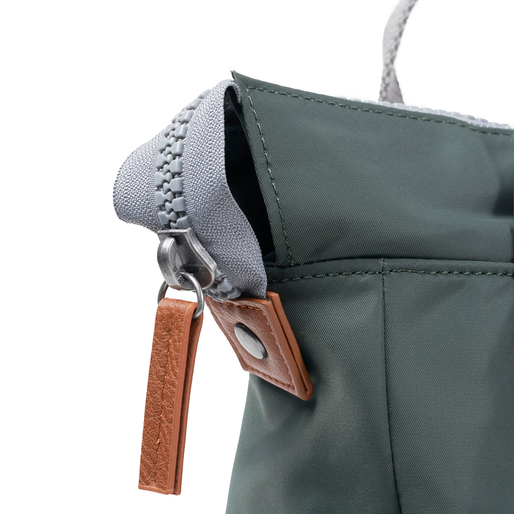 The Bantry comes in both Recycled Canvas and Recycled Nylon options. The Nylon has a shiny look and smooth feel, and the Canvas has a textured look and matte feel. See our Sustainability tab below for more information.