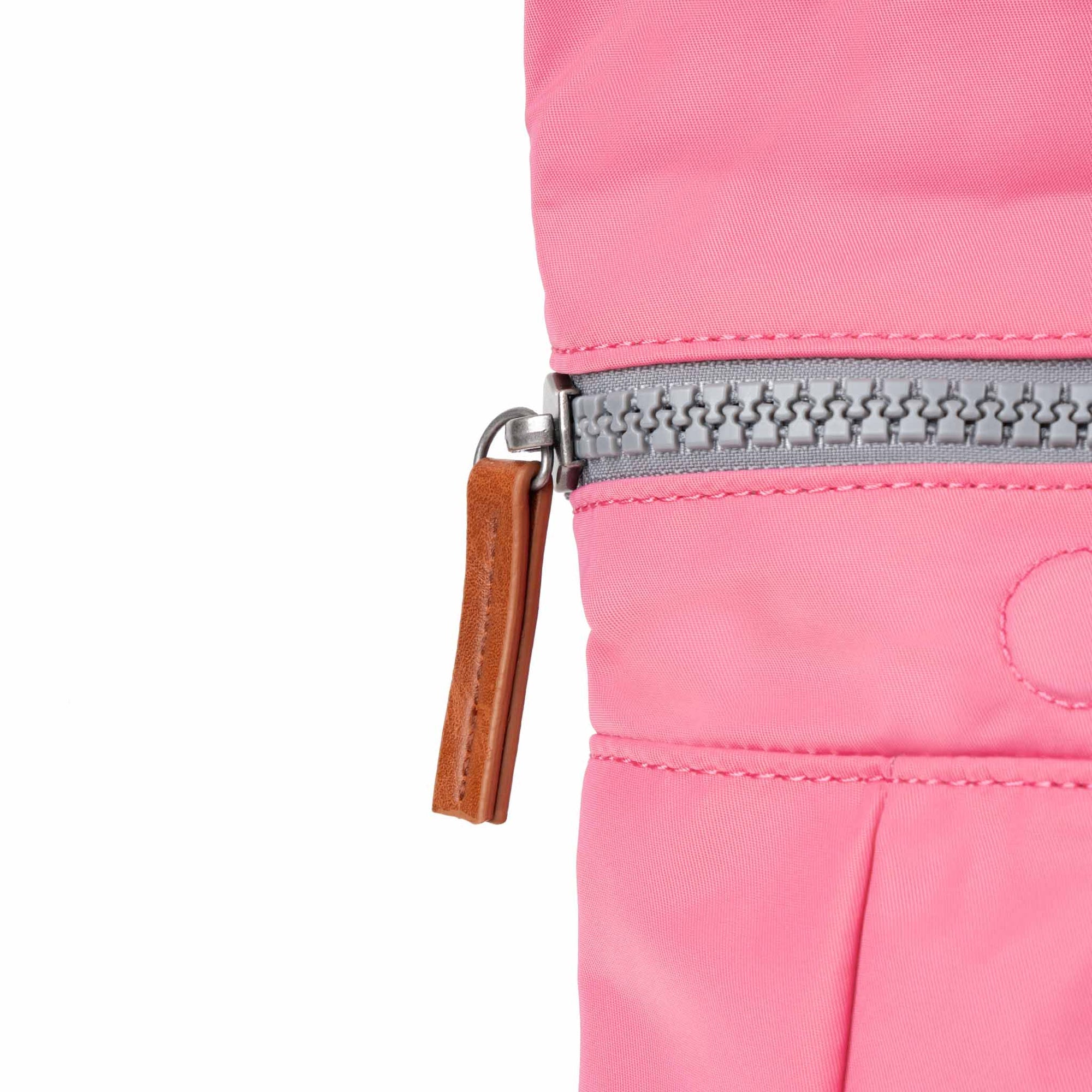 The Canfield comes in both Recycled Canvas and Recycled Nylon options. The Nylon has a shiny look and smooth feel, and the Canvas has a textured look and matte feel. See our Sustainability tab below for more information.