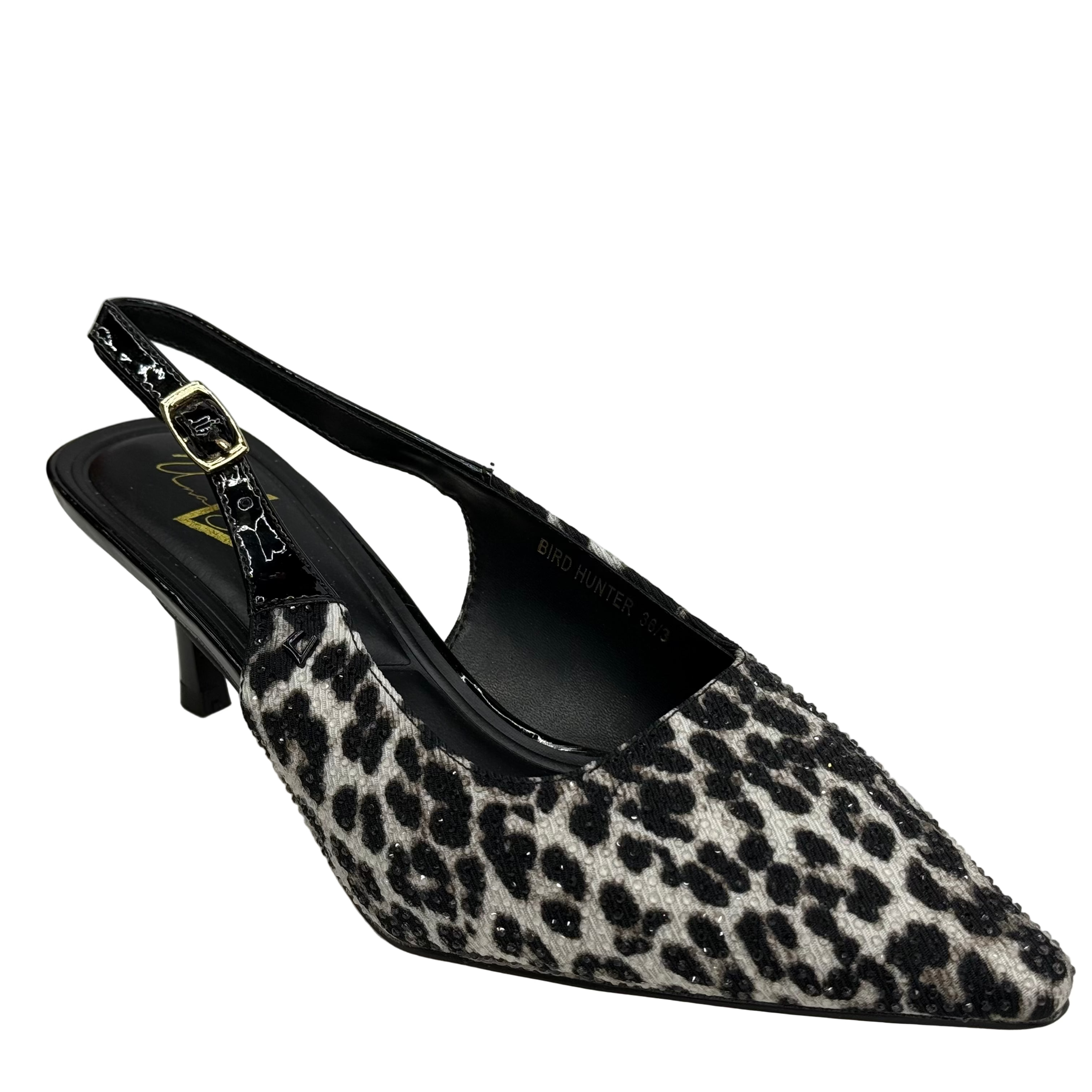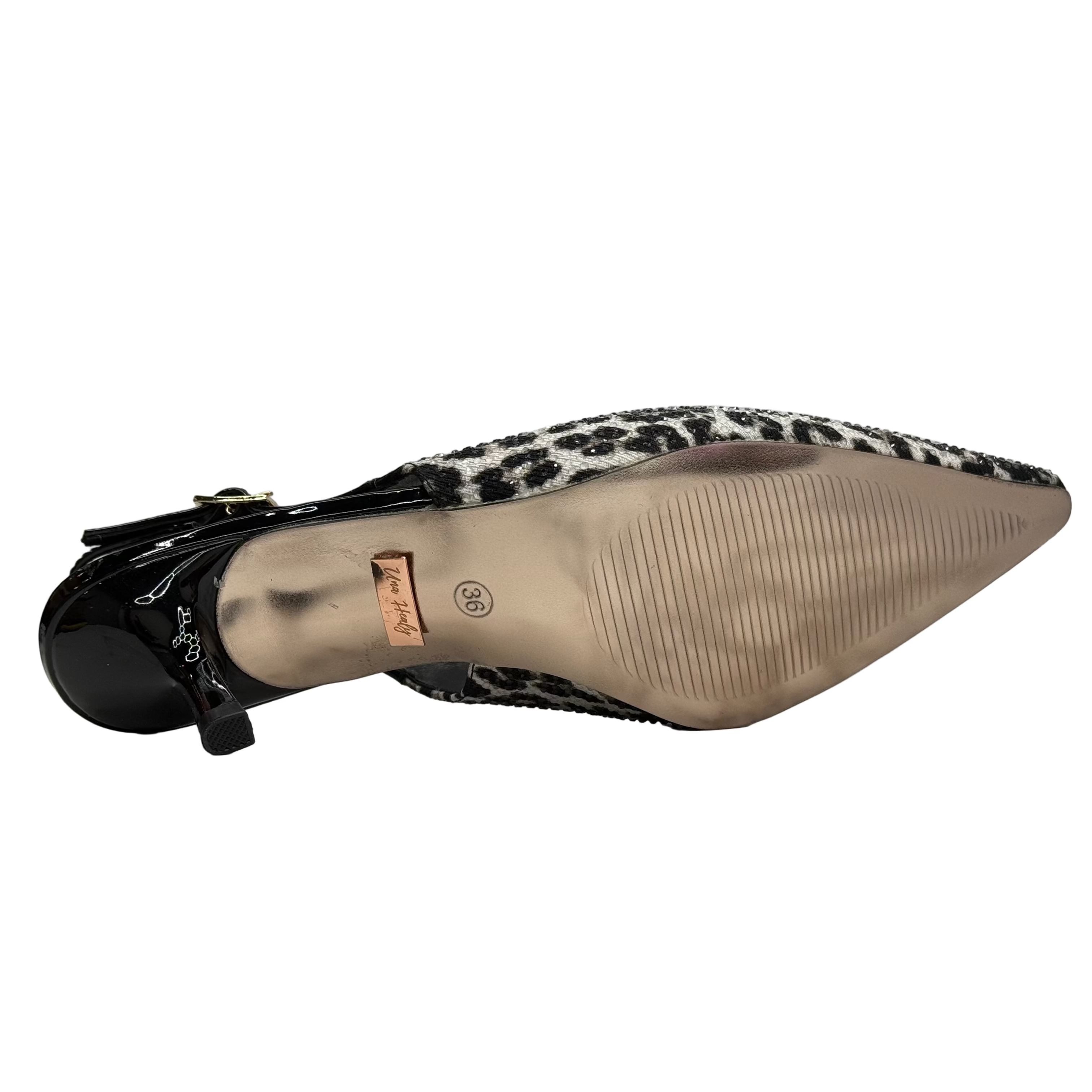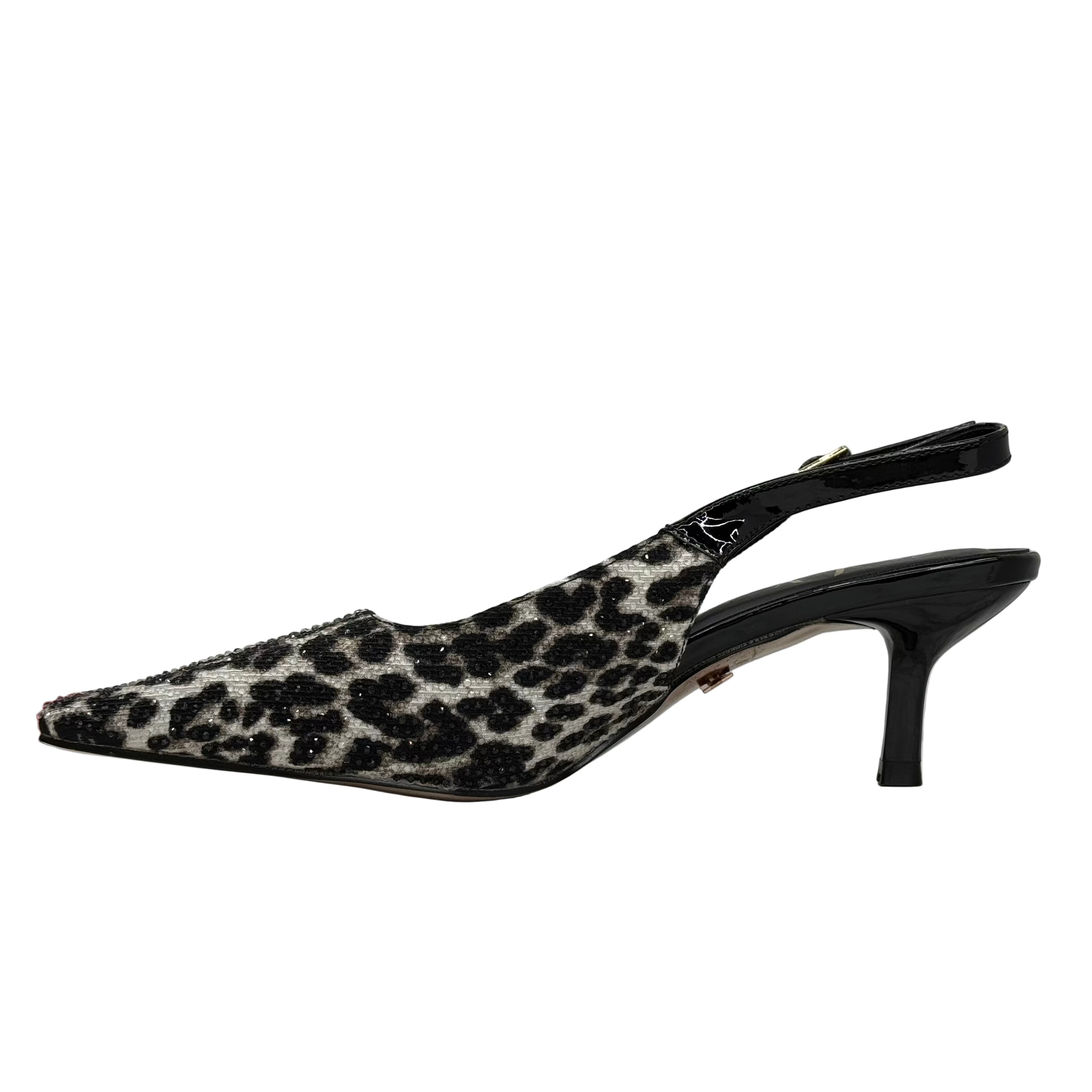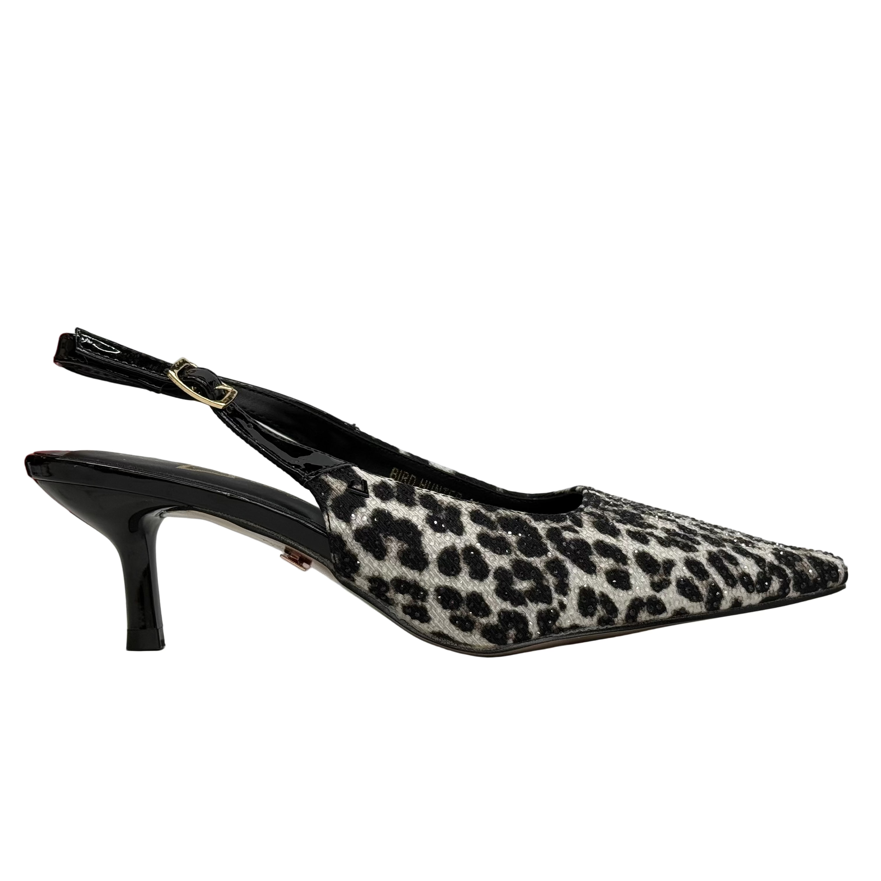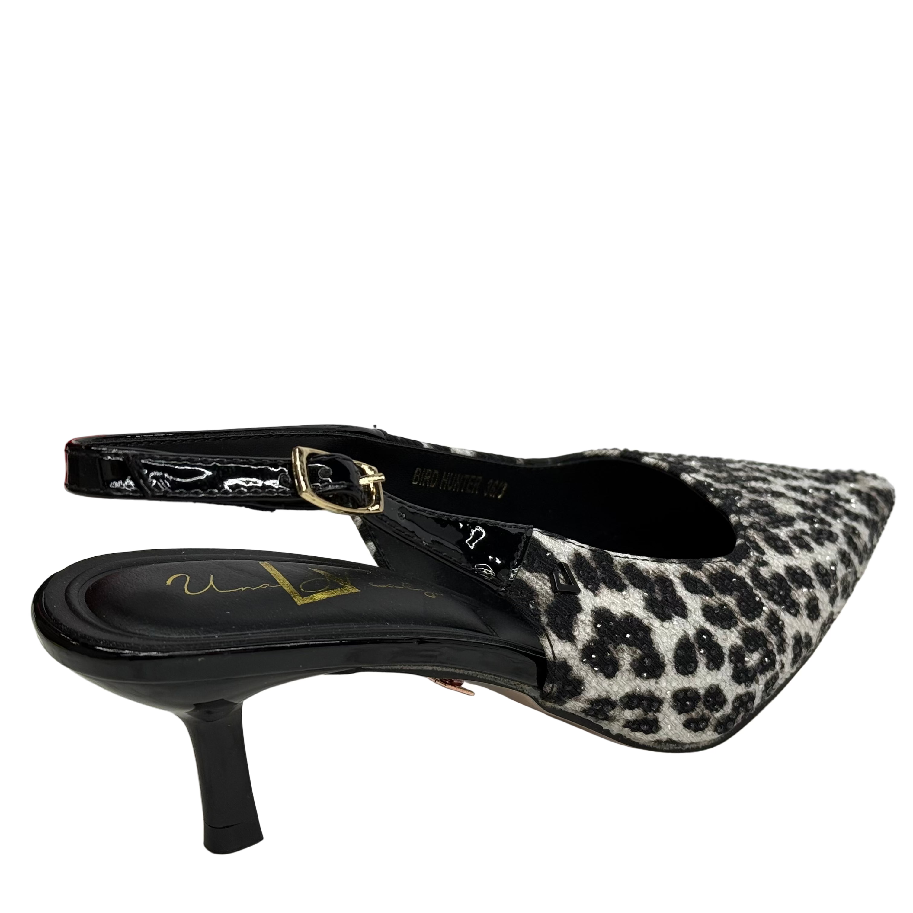 Bring some sparkle to your step with the Una Healy Bird Hunter slingback heels. Featuring a dazzling leopard print shimmer, these pointed-toe beauties are made to catch eyes. The adjustable slingback strap ensures a snug fit, while the 5.5cm heel lifts your style perfectly for a day full of confident flair.