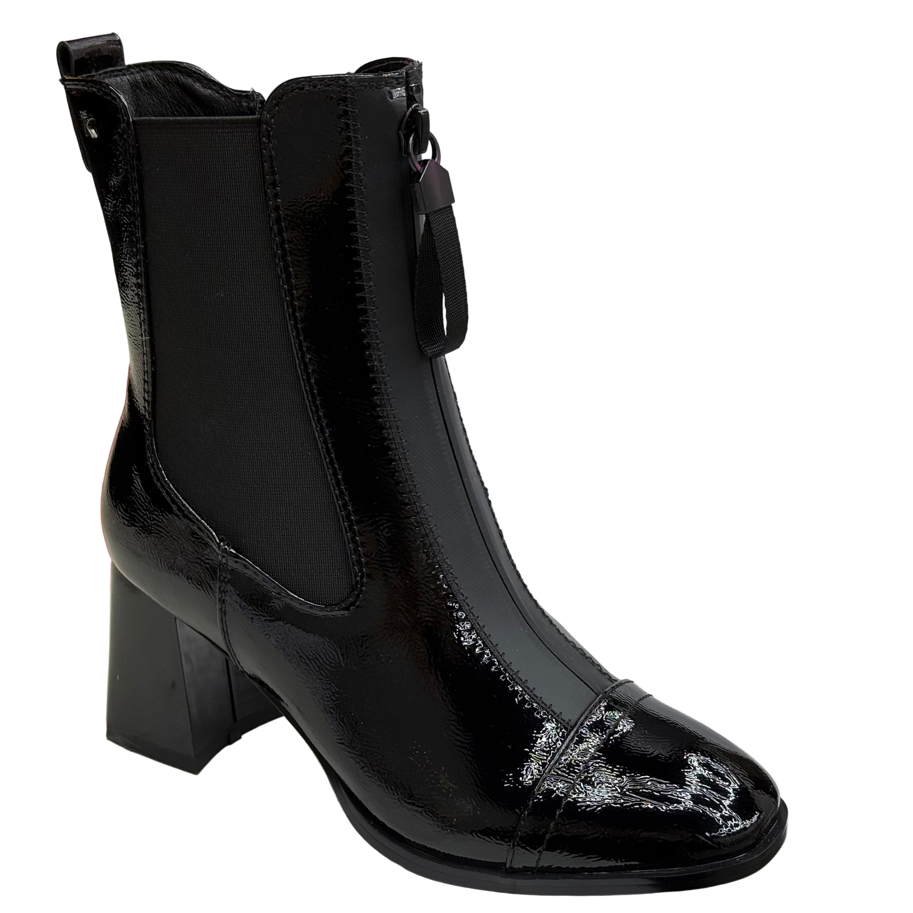 Make a statement this season with the Larkhill Patent Ankle Boot — timeless elegance with a glossy finish.