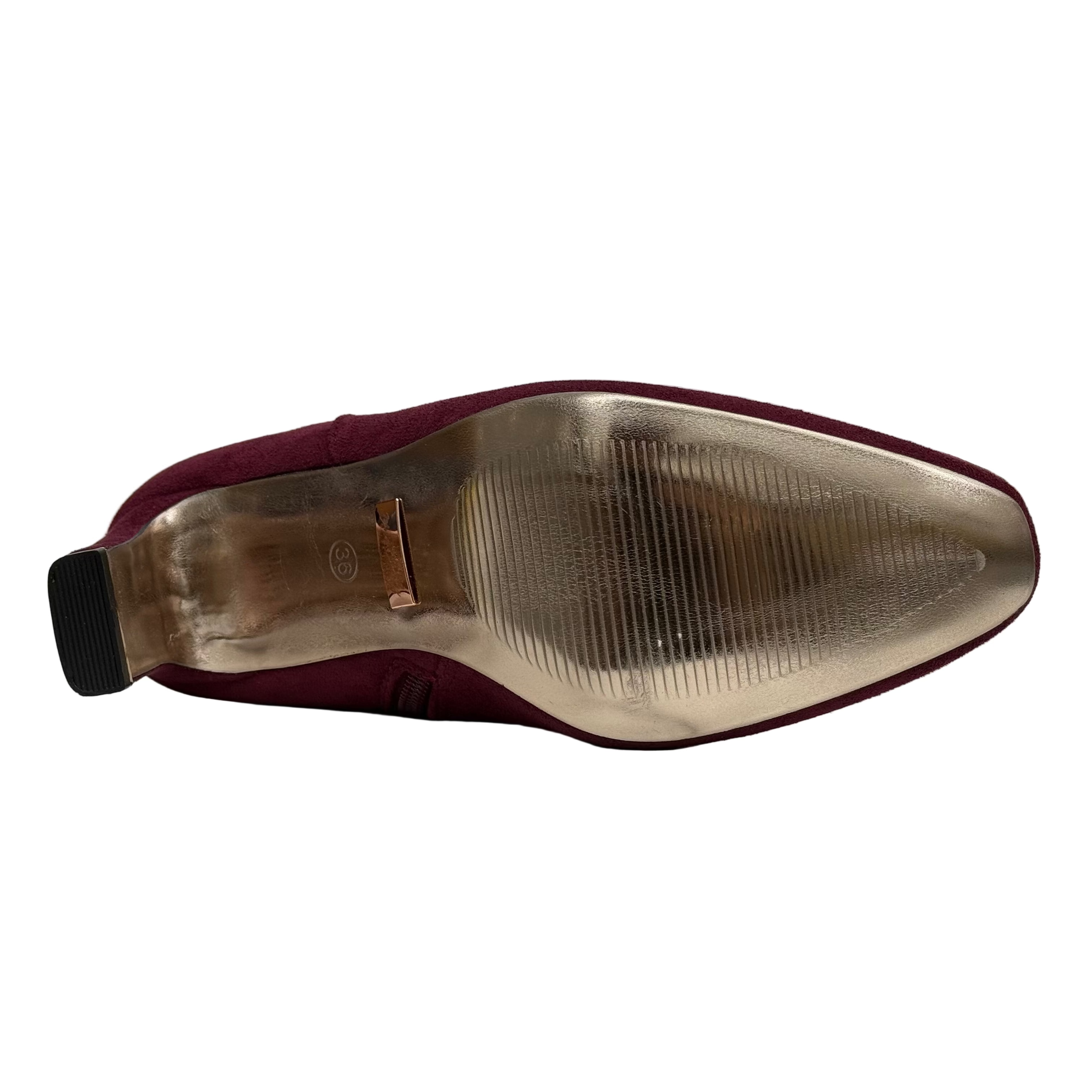Inject some vibrant flair into your winter outfits with the Darlin ankle boot. Draped in a bold Jazzberry hue, this chic boot boasts a trendy block heel and a sharp pointed toe. Whether you're rocking jeans, skirts, or dresses, these boots add a touch of playful elegance, keeping you stylish and cozy as the temperatures drop.
