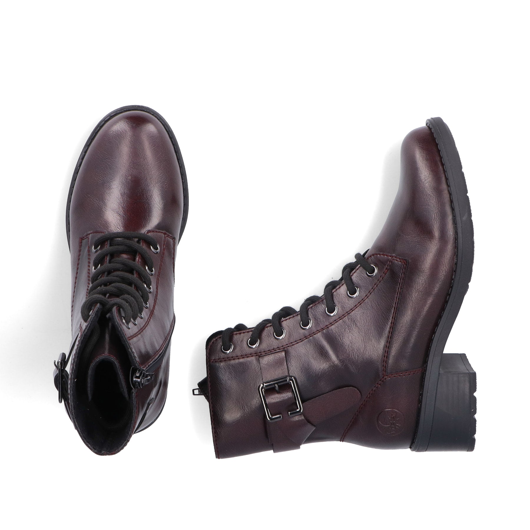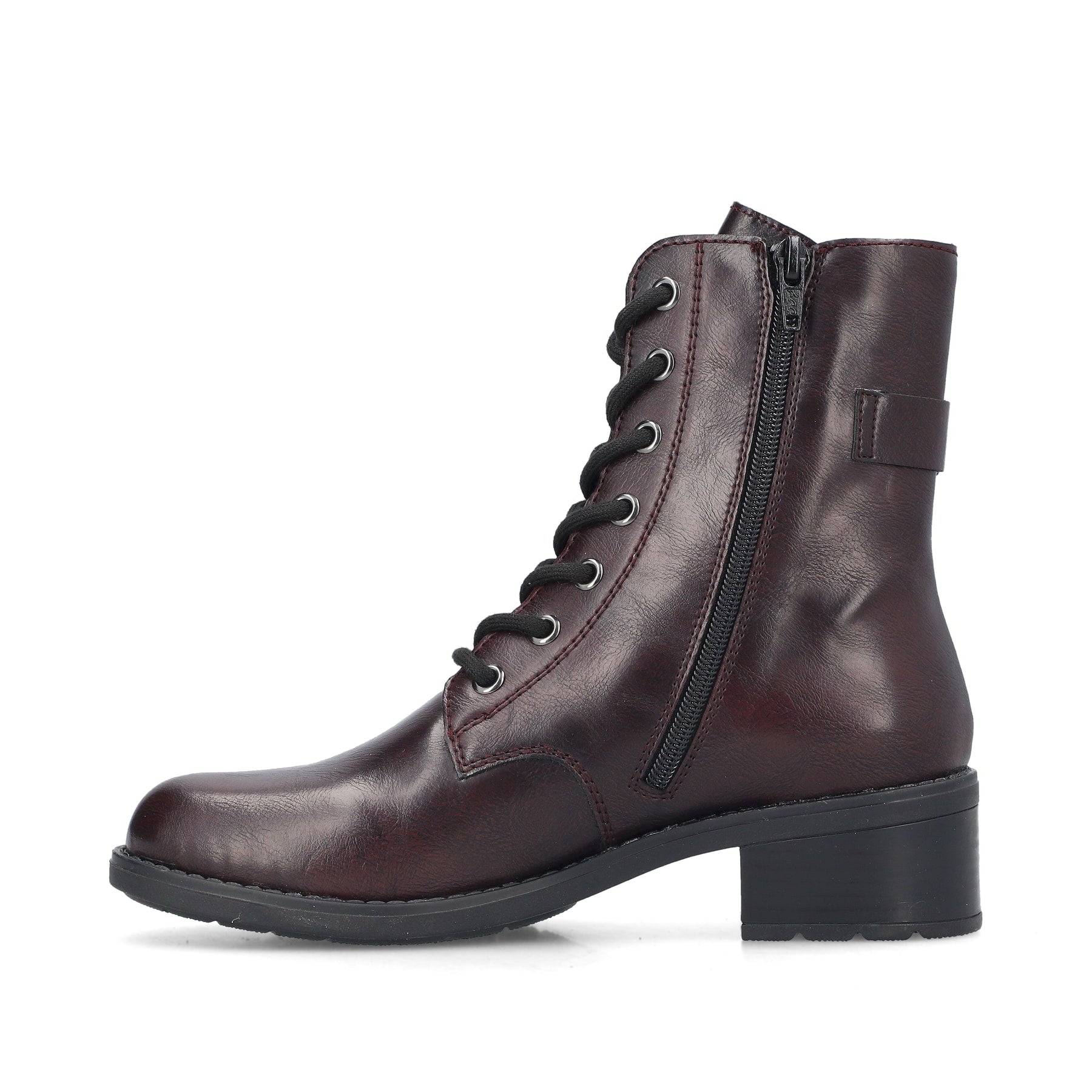 Rieker Womens Fashion Block Heel Ankle Boot | Deep Red