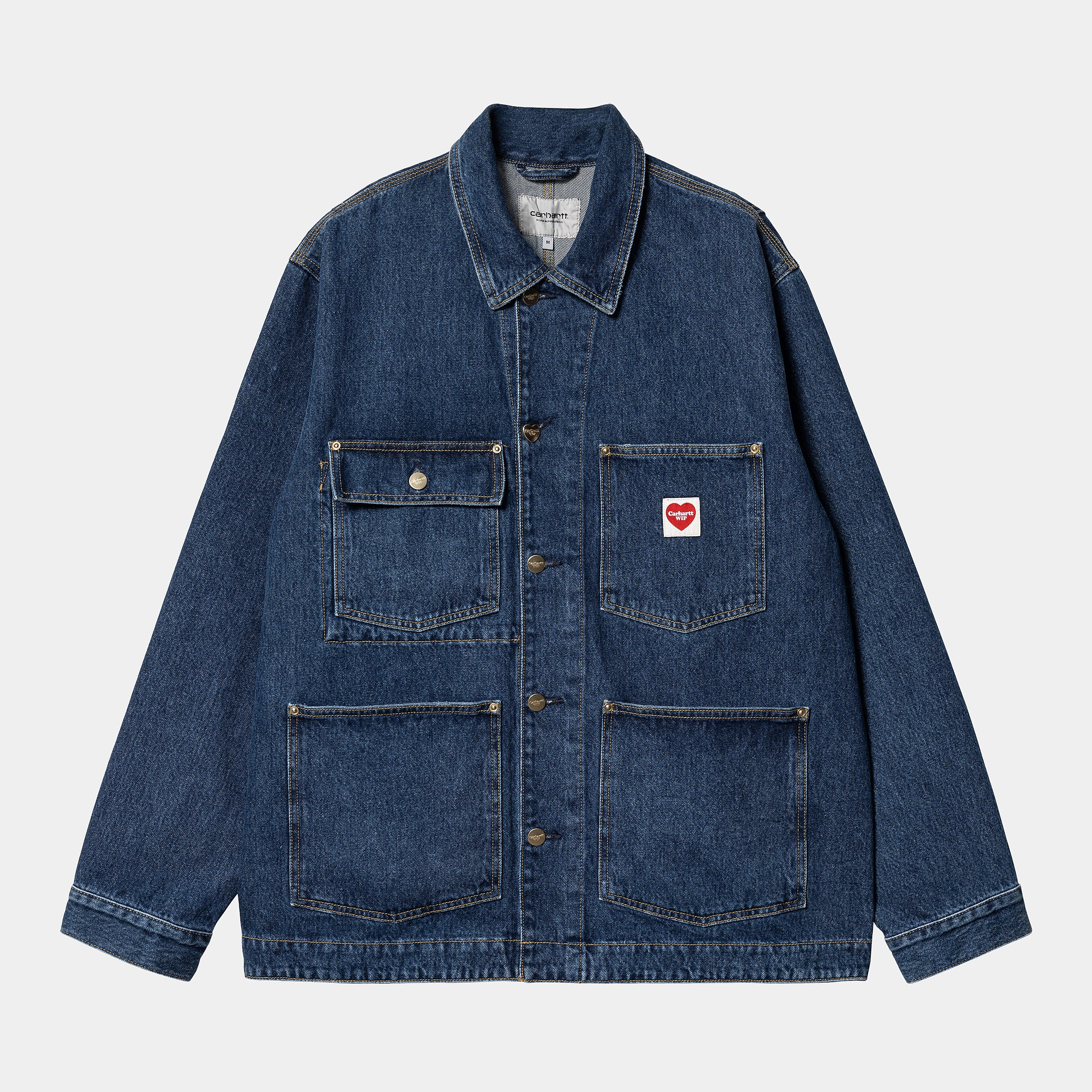 The Carhartt Nash Jacket is inspired by a classic chore coat and is constructed from robust Smith denim. While some iterations of this item have been rinsed, offering a softer feel without compromising on durability, others have been stone-washed for a subtly worn-in appearance. Triple-stitched details, multiple front pockets, and metal rivets are nods to the item's utilitarian influences. A woven Heart Label on the front references the brand's heritage.