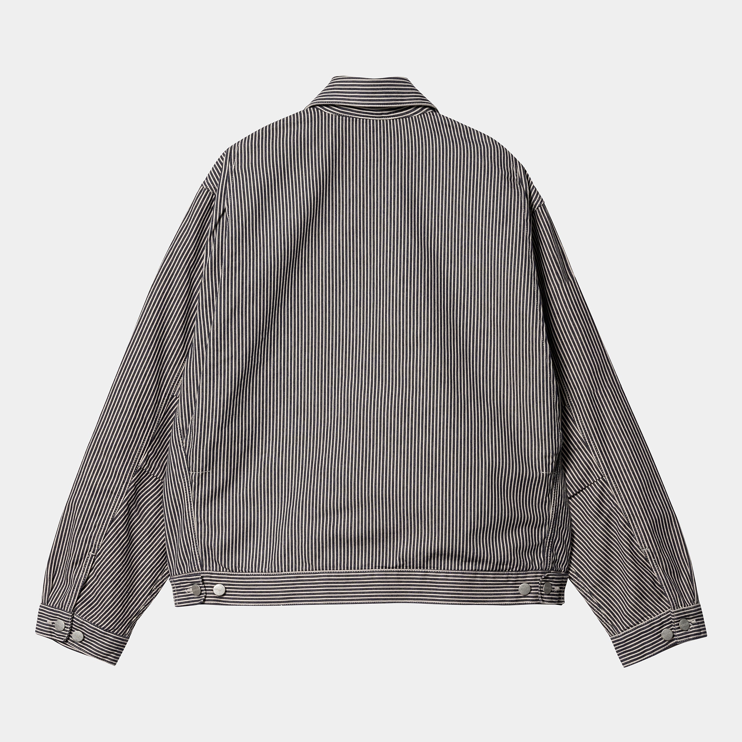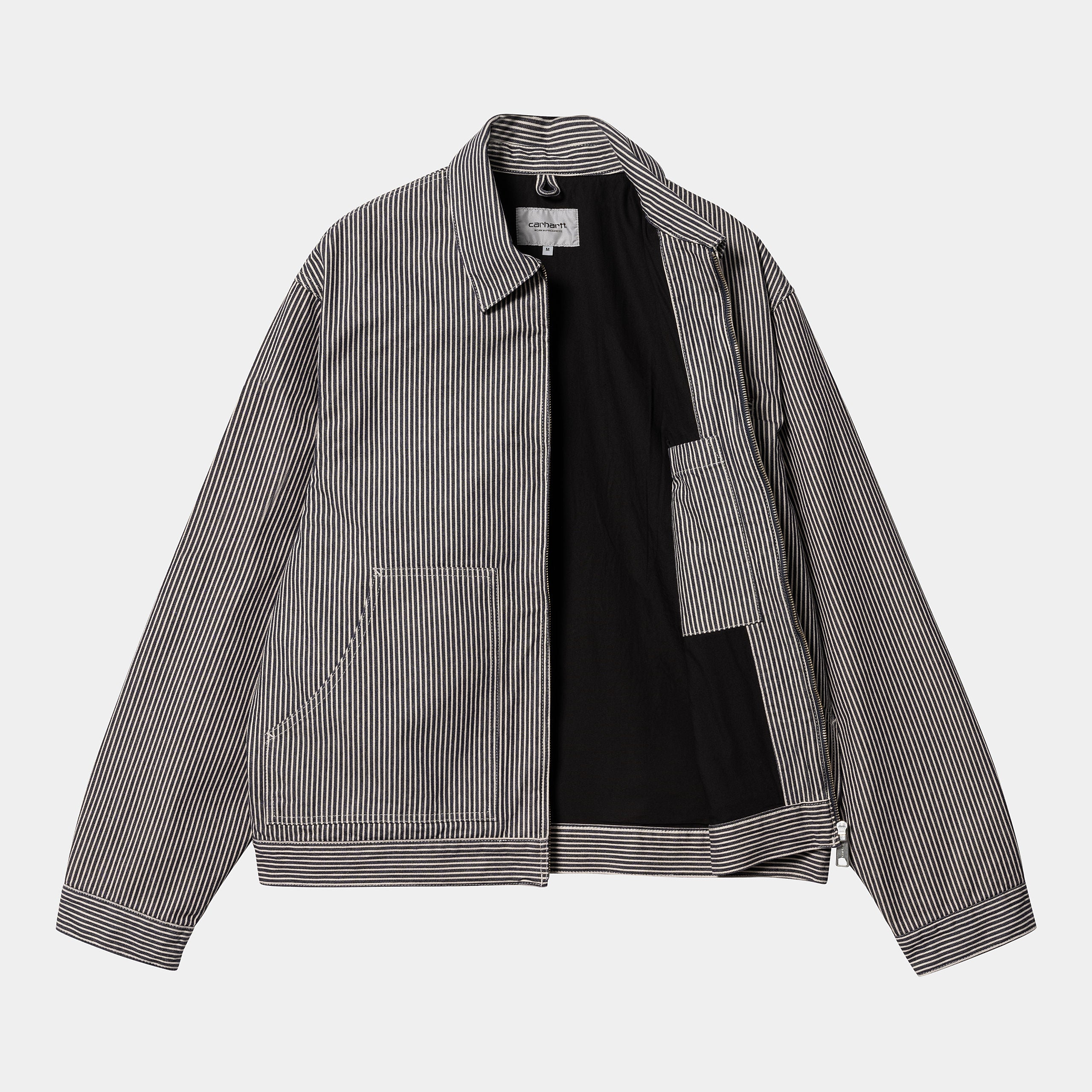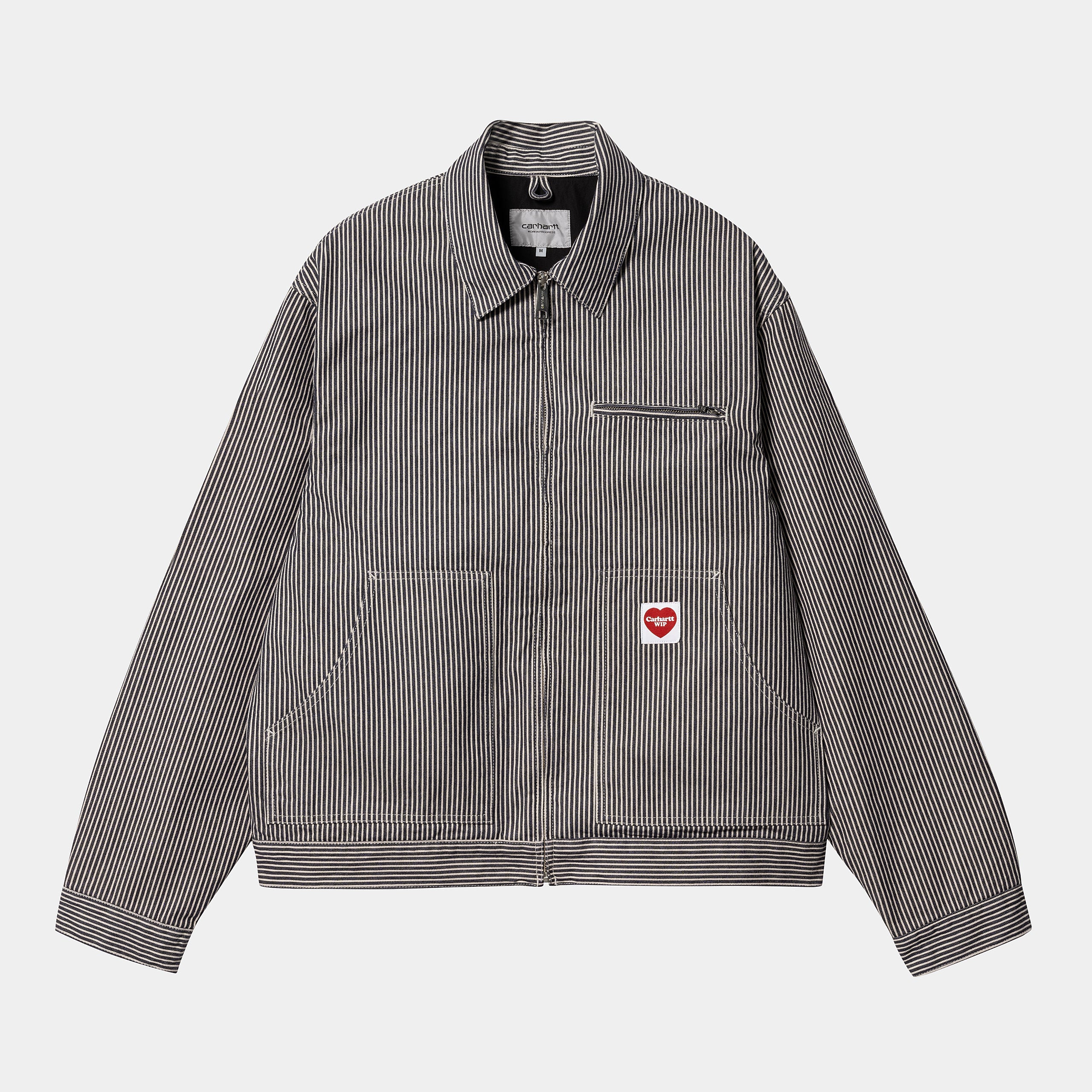 The CarharttTerrell Jacket is made from midweight, hickory striped Terrell fabric. It is lined with cotton poplin in the body and nylon in the sleeves. The garment features a zipped chest pocket, as well as a split kangaroo pocket on the front. An adjustable hem and cuffs allow for the fit to be adapted. A woven Heart Label on the front nods to the brand's heritage.