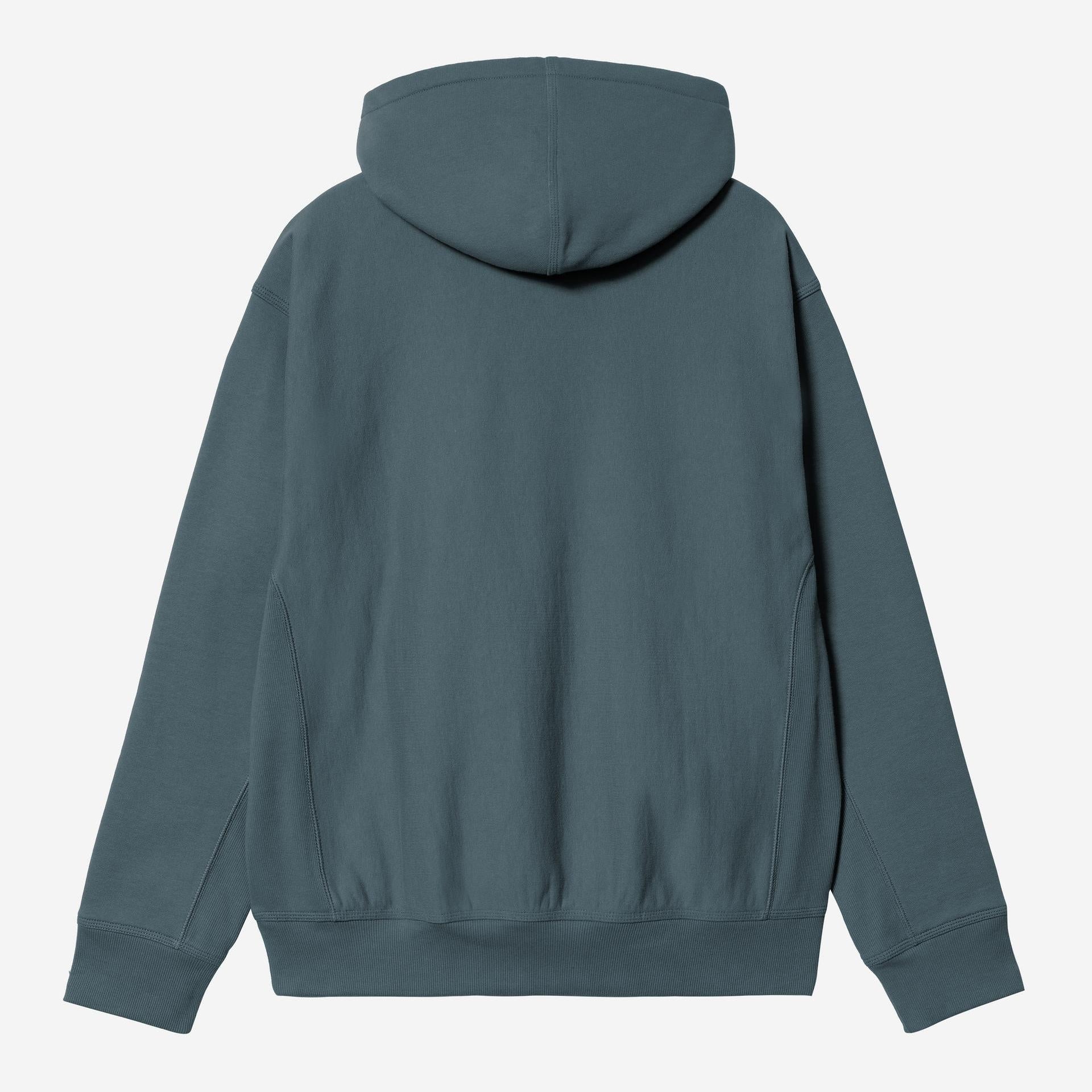 The Carhartt WIP Hooded American Script Sweatshirt is constructed from a cotton-polyester blend and brushed for extra softness and warmth without losing breathability. Features a kangaroo pocket. This garment has a loose, boxy silhouette.