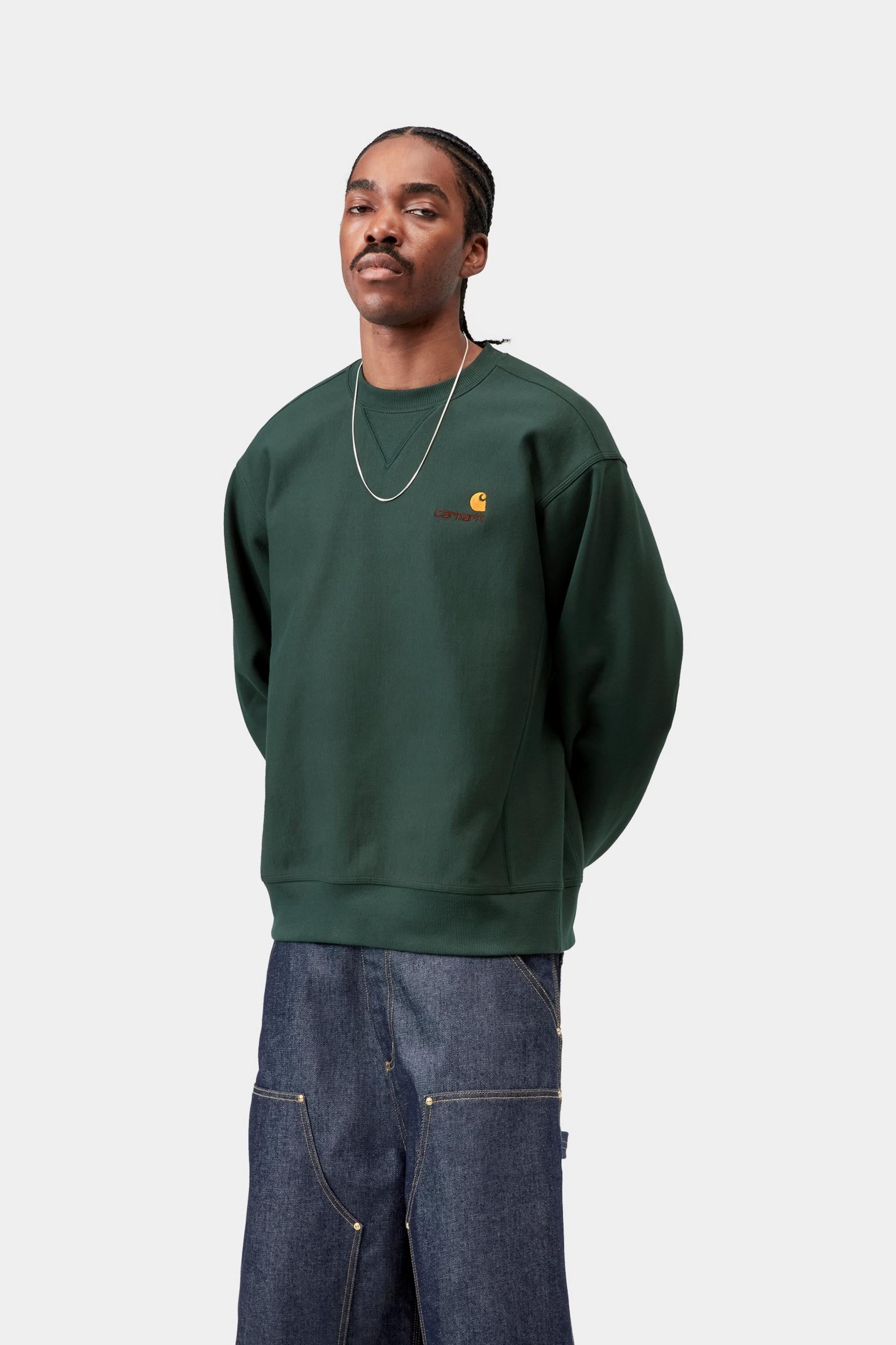 Carhartt WIP Mens American Script Sweat Top | Kale Green