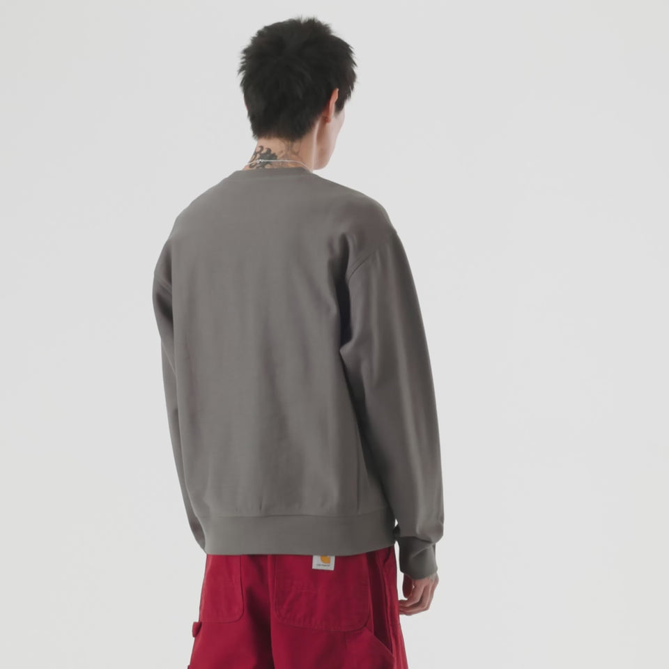 Made from heavyweight, cotton-poly jersey fabric, the Carhartt WIP American Script Sweatshirt has been brushed to give it a fleece-like backing. The garment has a loose fit and is detailed with a crewneck collar, as well as a ribbed hem, cuffs, and side panels. American Script embroidery appears at the chest.