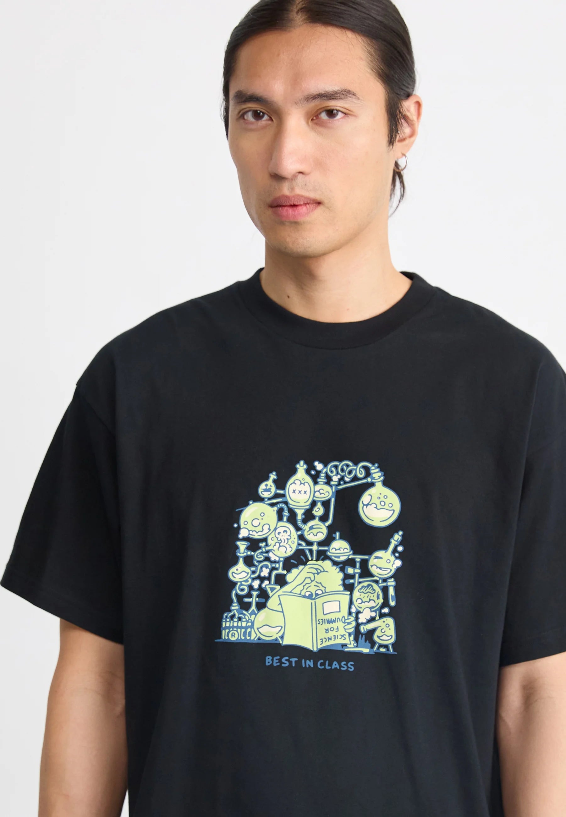 The S/S Beaker T-Shirt is made in a loose fit from a midweight organic cotton jersey. A graphic print appears on the front.