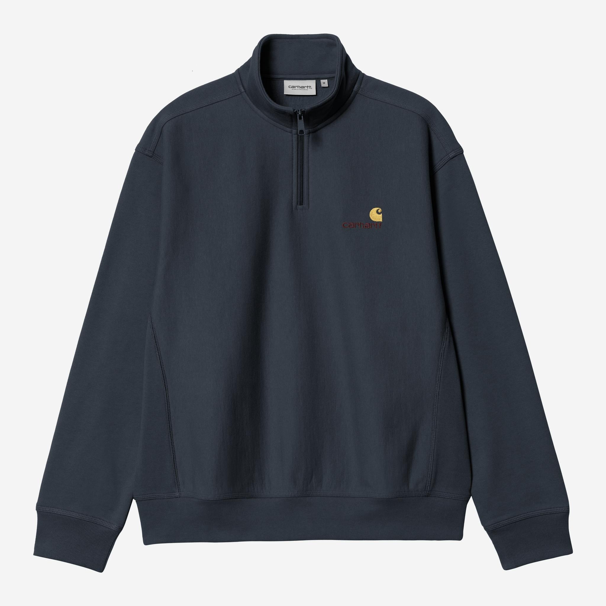 Carhartt WIP Mens Half Zip American Script Sweat Top | Deep Night