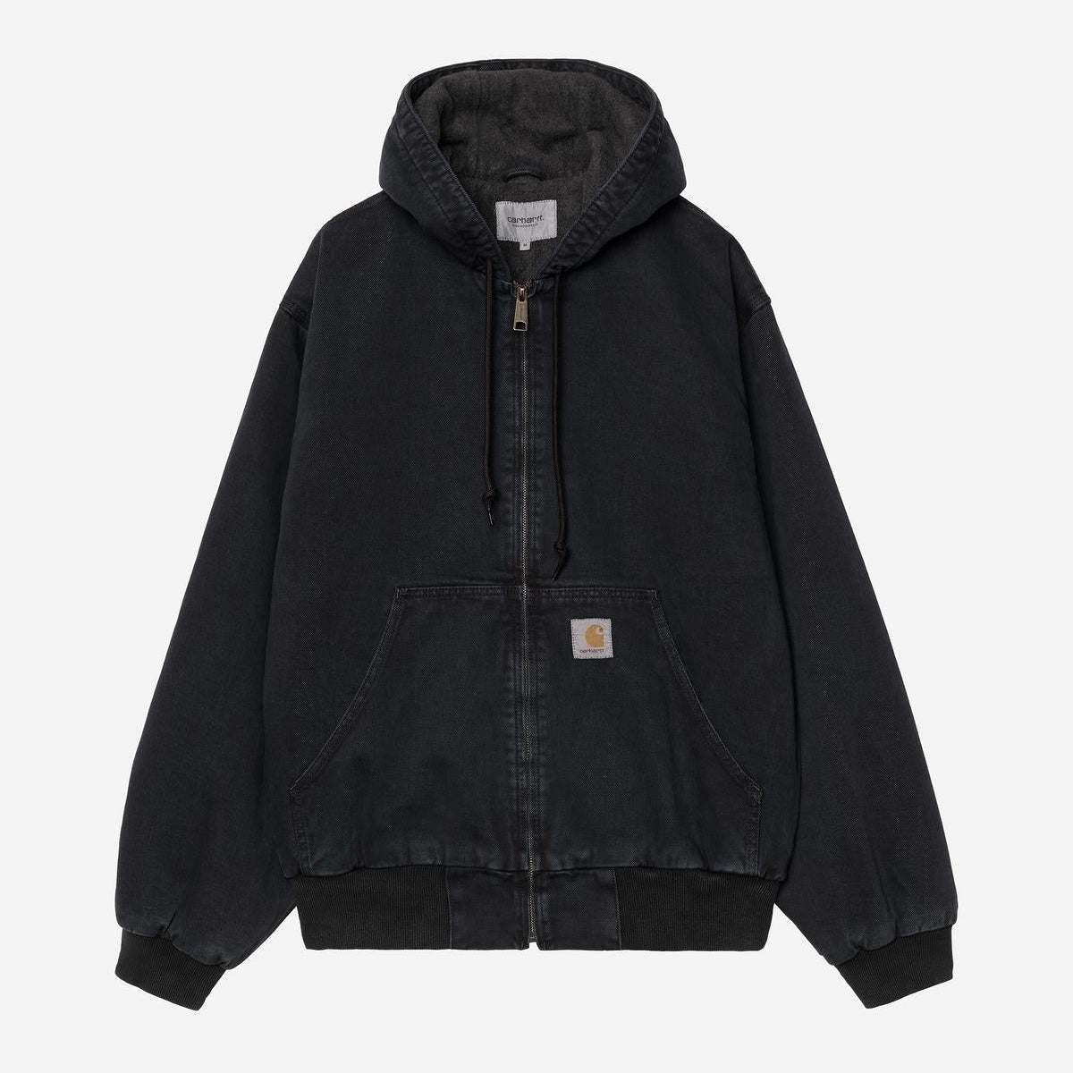 The Carhartt OG Active Jacket is constructed in our original loose fit from Maitland denim, which is a heavyweight cotton fabric. It also features an insulating, striped blanket lining. A kangaroo pocket and adjustable hood offer functional touches, while triple-stitch details provide extra durability.