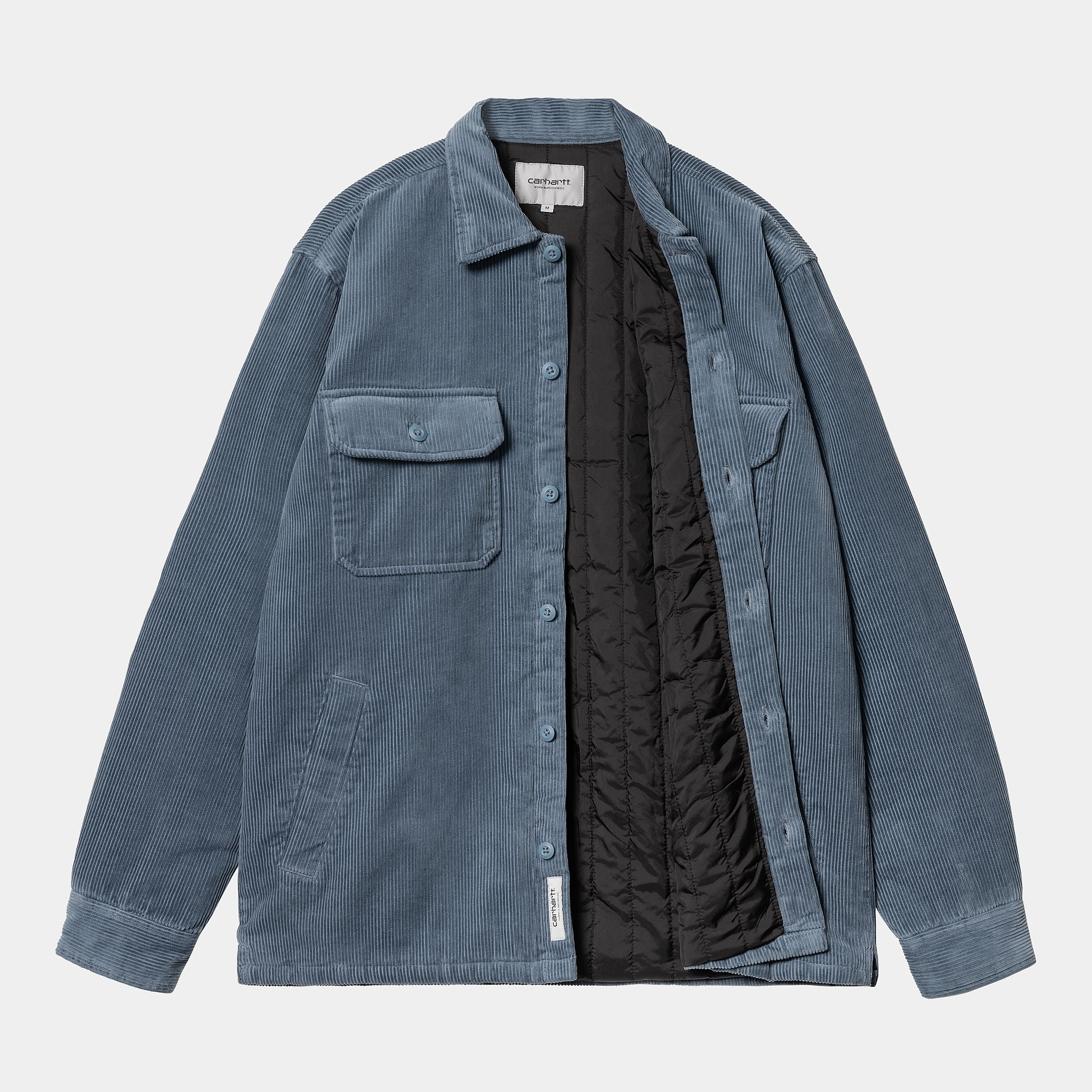 The Carhartt Whitsome Shirt Jacket is constructed from 9.2 oz eight wale cotton corduroy, which is a midweight fabric with thick ridges, and is cut to a loose fit. The item has also been garment-washed for softness and protection against loss of shape. Insulation comes by way of a vertical-quilted, nylon taffeta lining. Two large patch pockets on the chest — one of which features a woven Square Label — and two welt pockets complete the design.