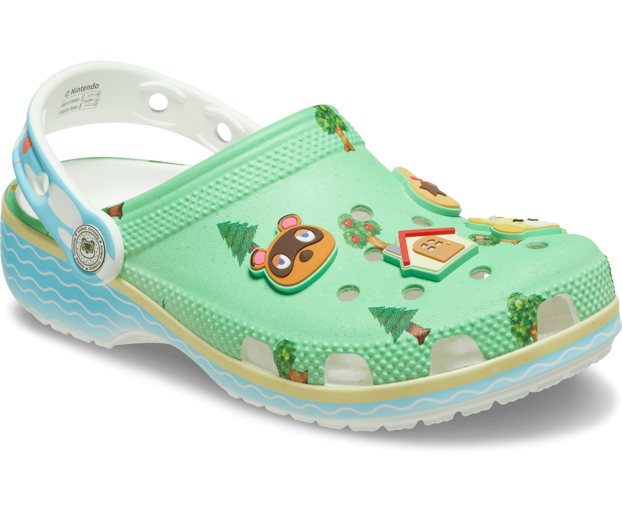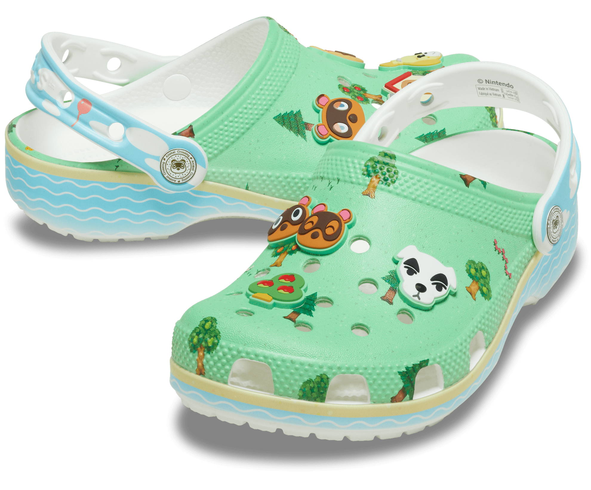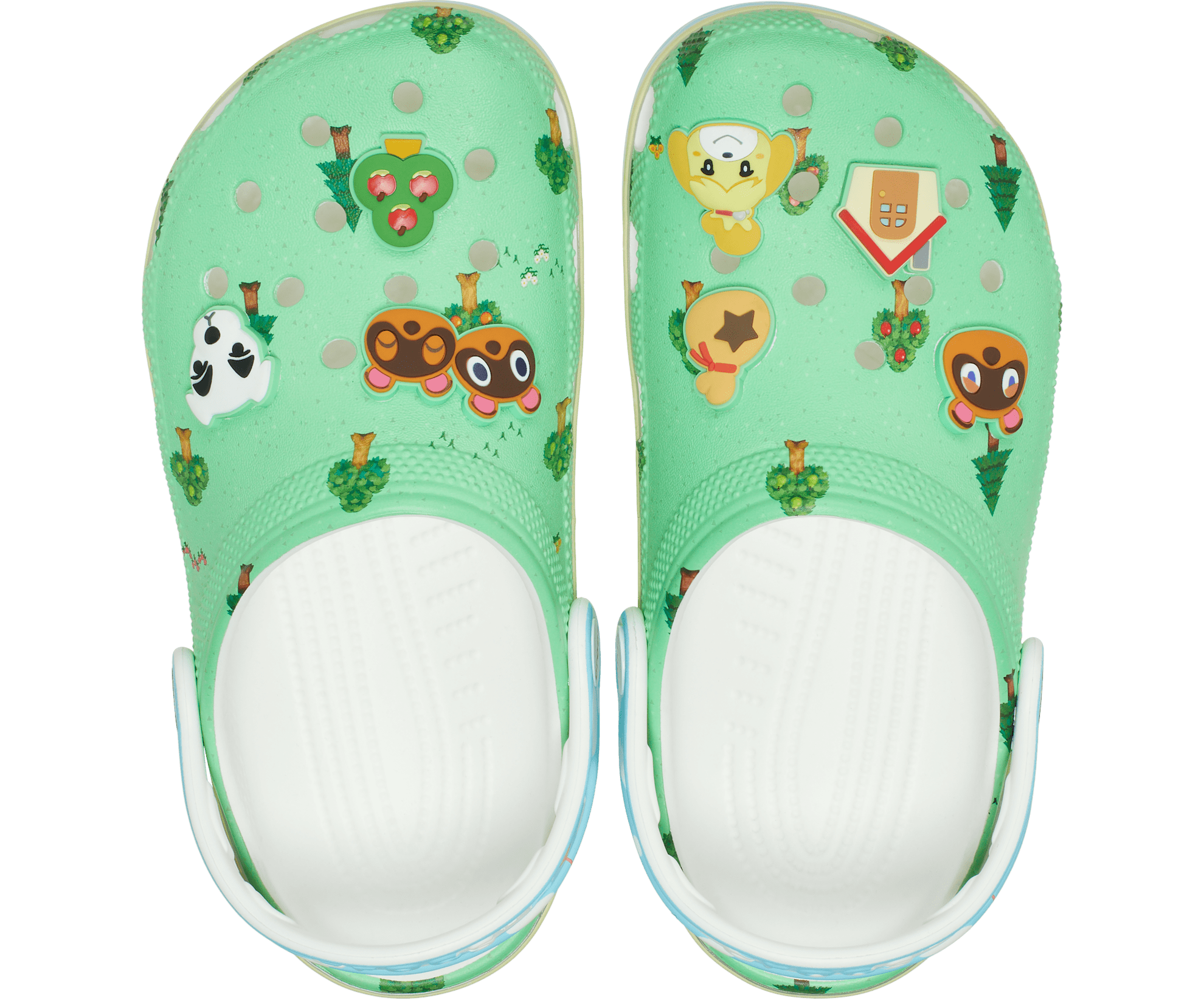 Little ones can escape to ultimate relaxation, in the Kids’ Animal Crossing Classic Clog. A peaceful forest on the upper and serene water scene on the sole provide the perfect setting for fixed Jibbitz™ charms featuring villagers and elements of the game — from Isabelle to the apple tree. And they can personalize their look even more with additional Jibbitz™ charms.