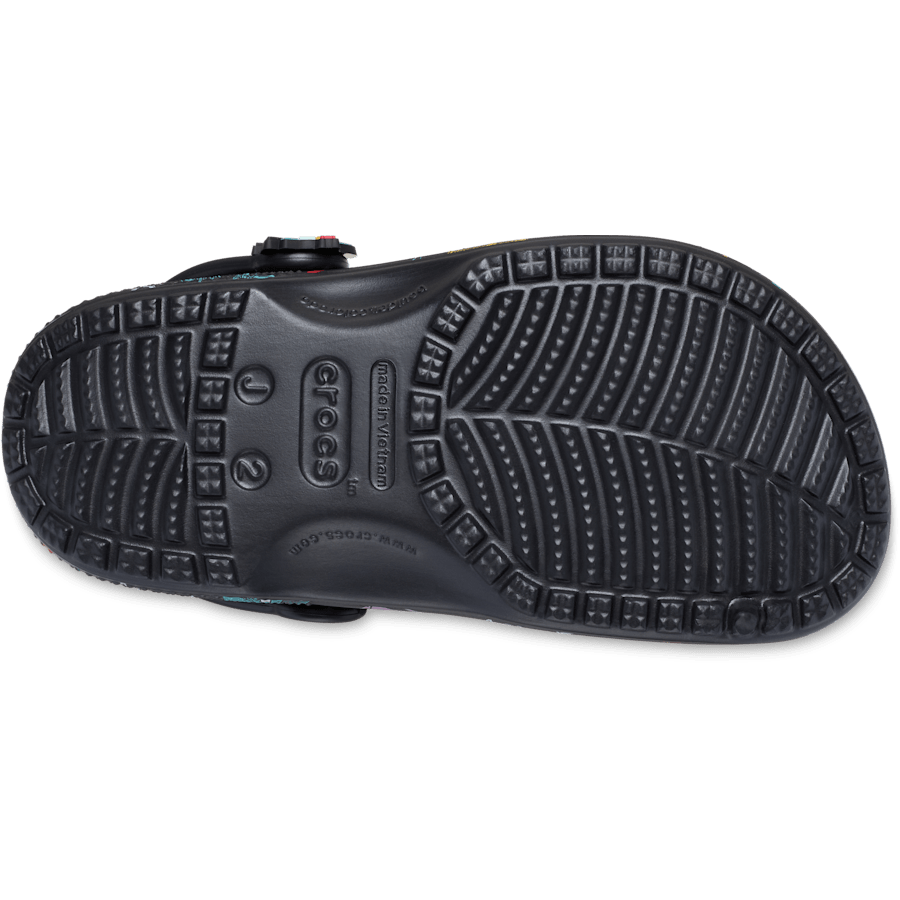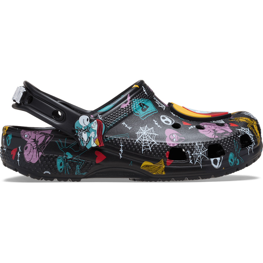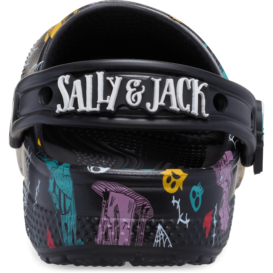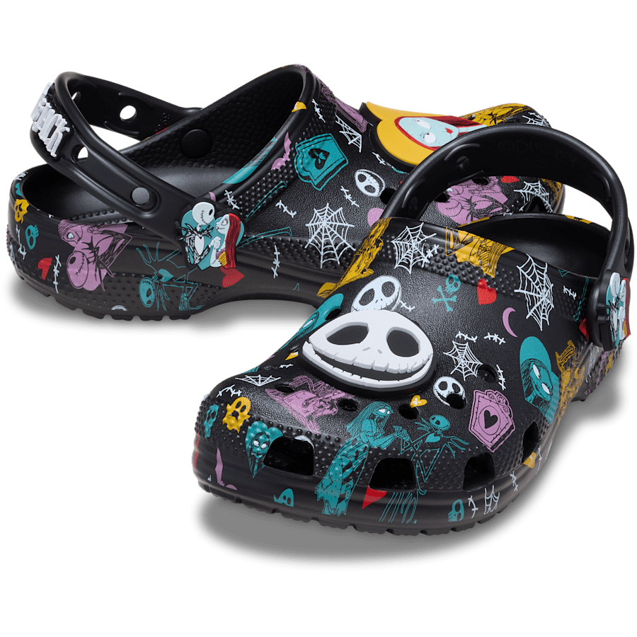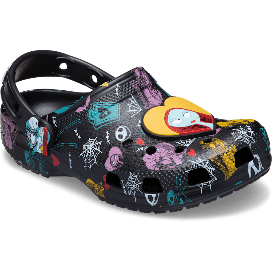 It’s love at first scare in the Disney Tim Burton’s The Nightmare Before Christmas Multi Classic Clog. Each pair features a collage of sweet and scary illustrations featuring the pumpkin king and queen. Two oversized Sally and Jack Jibbitz™ charms come fixed to the top with plenty of room for more of your little one’s favorite personalization. They’ll fall wickedly in love with this pair the moment they step in.