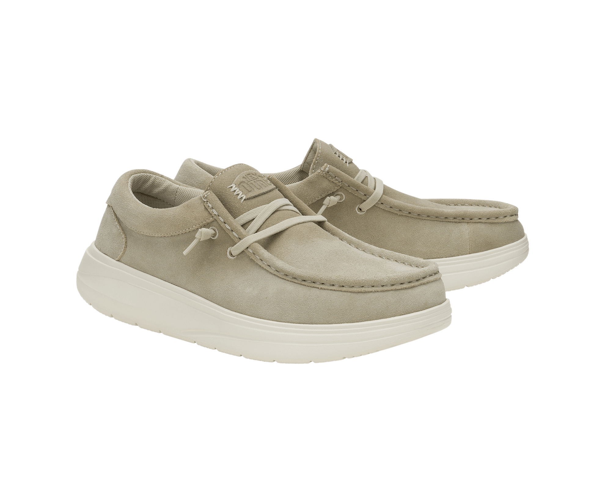 Buy Hey Dude Mens Wally COMF Suede Moccasin | Stone Grey / Silver Birch with confidence as The Foot Factory is an authorised retailer