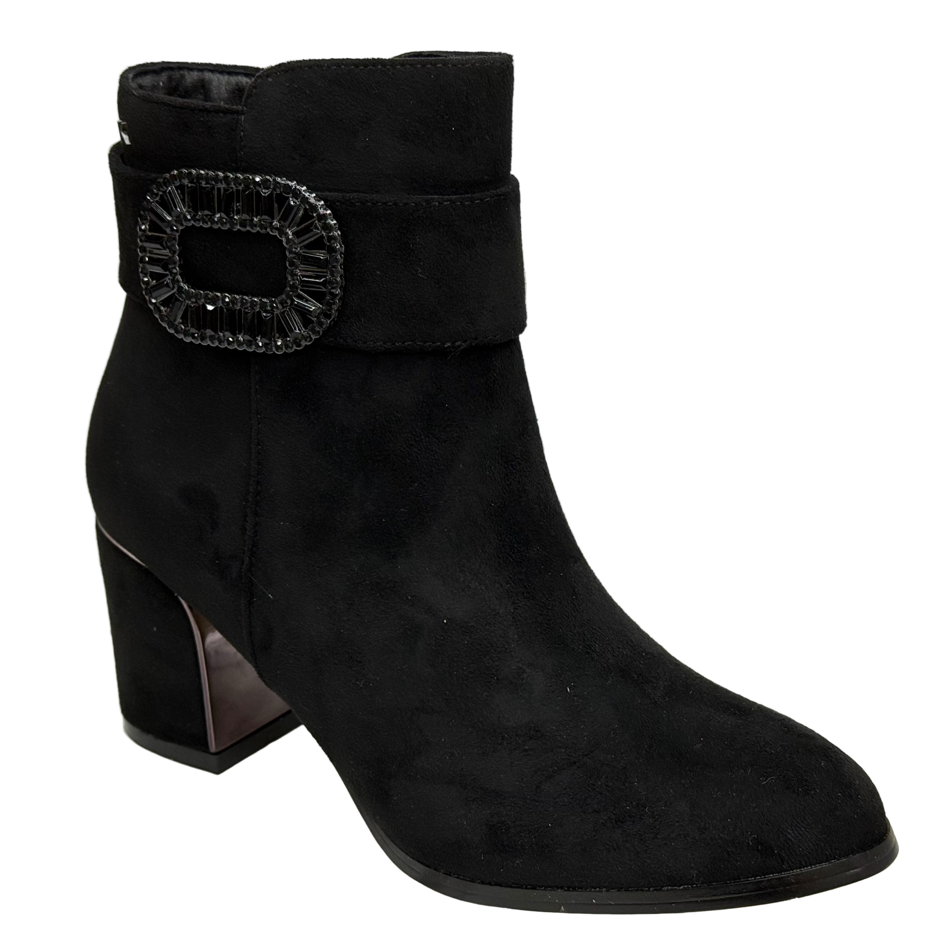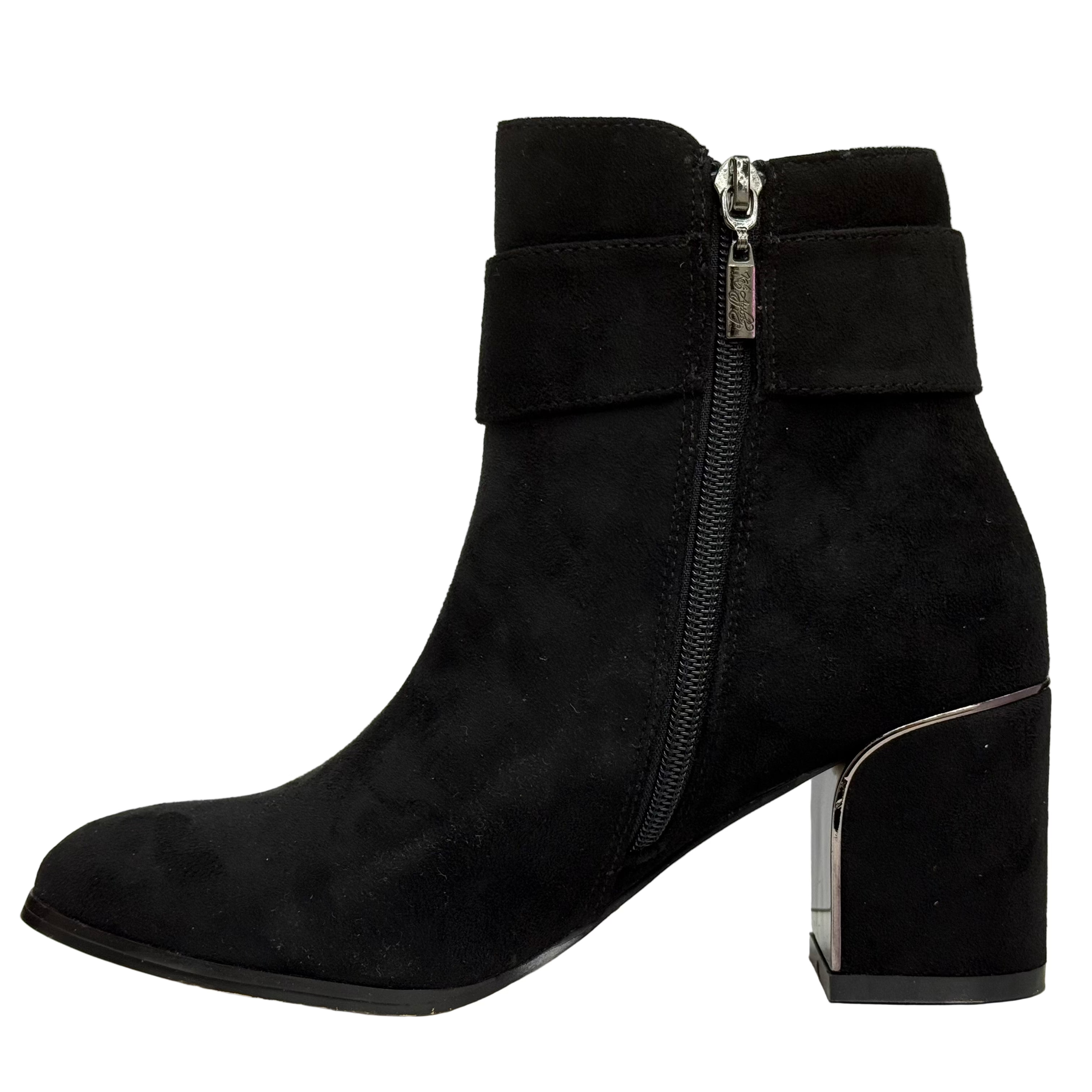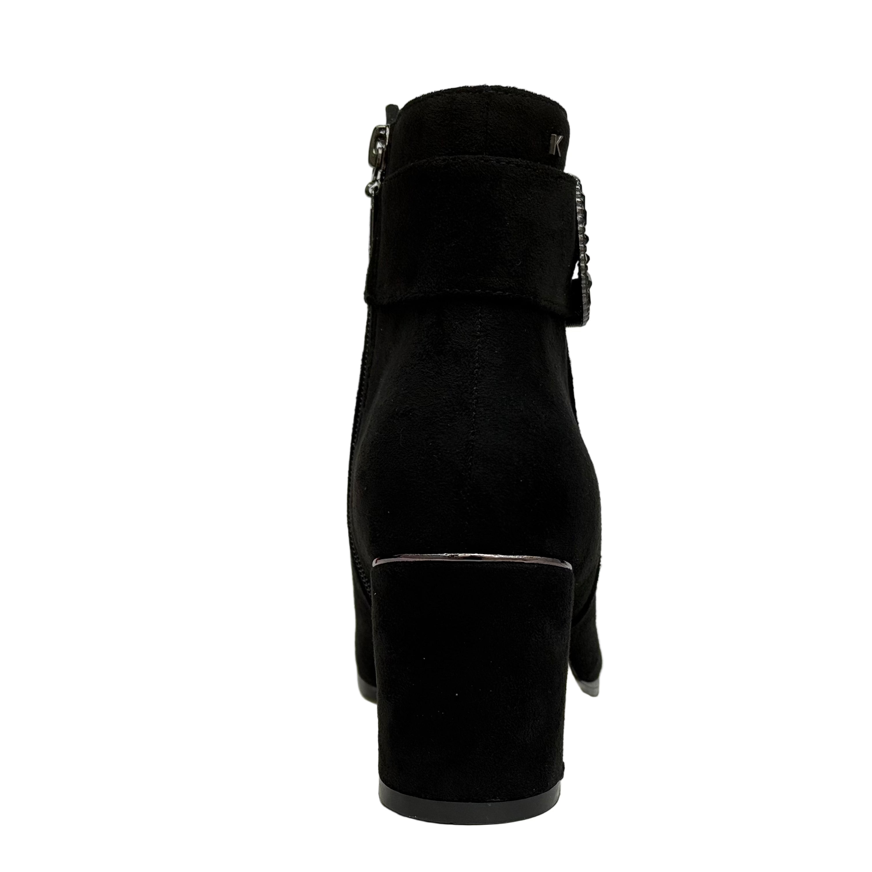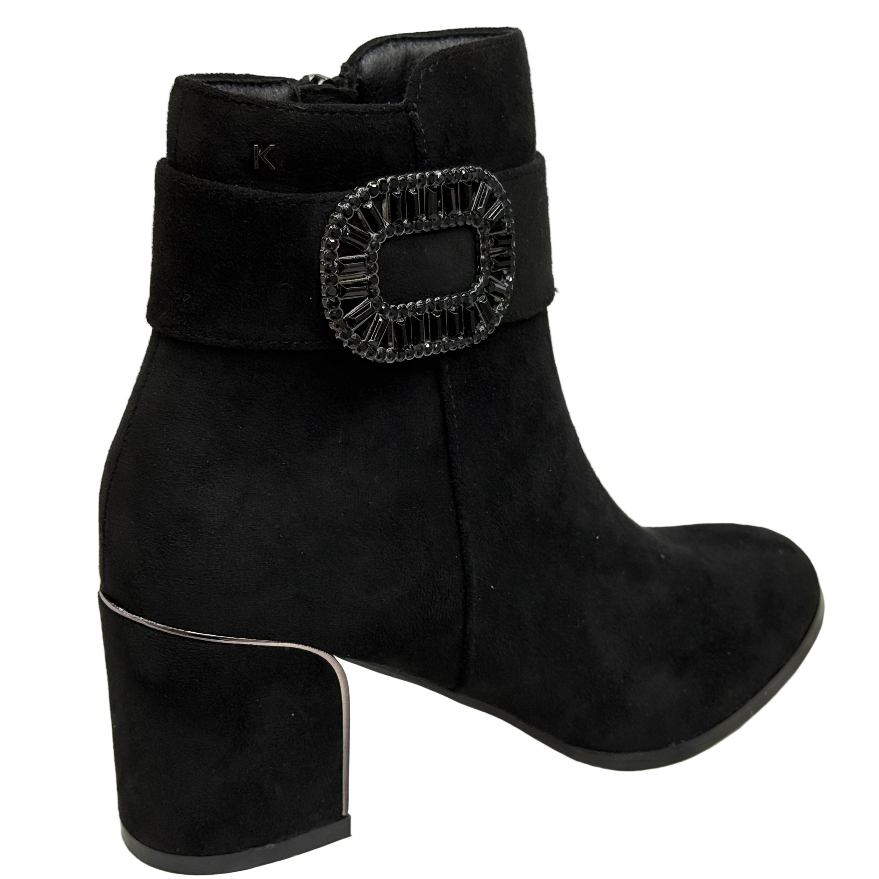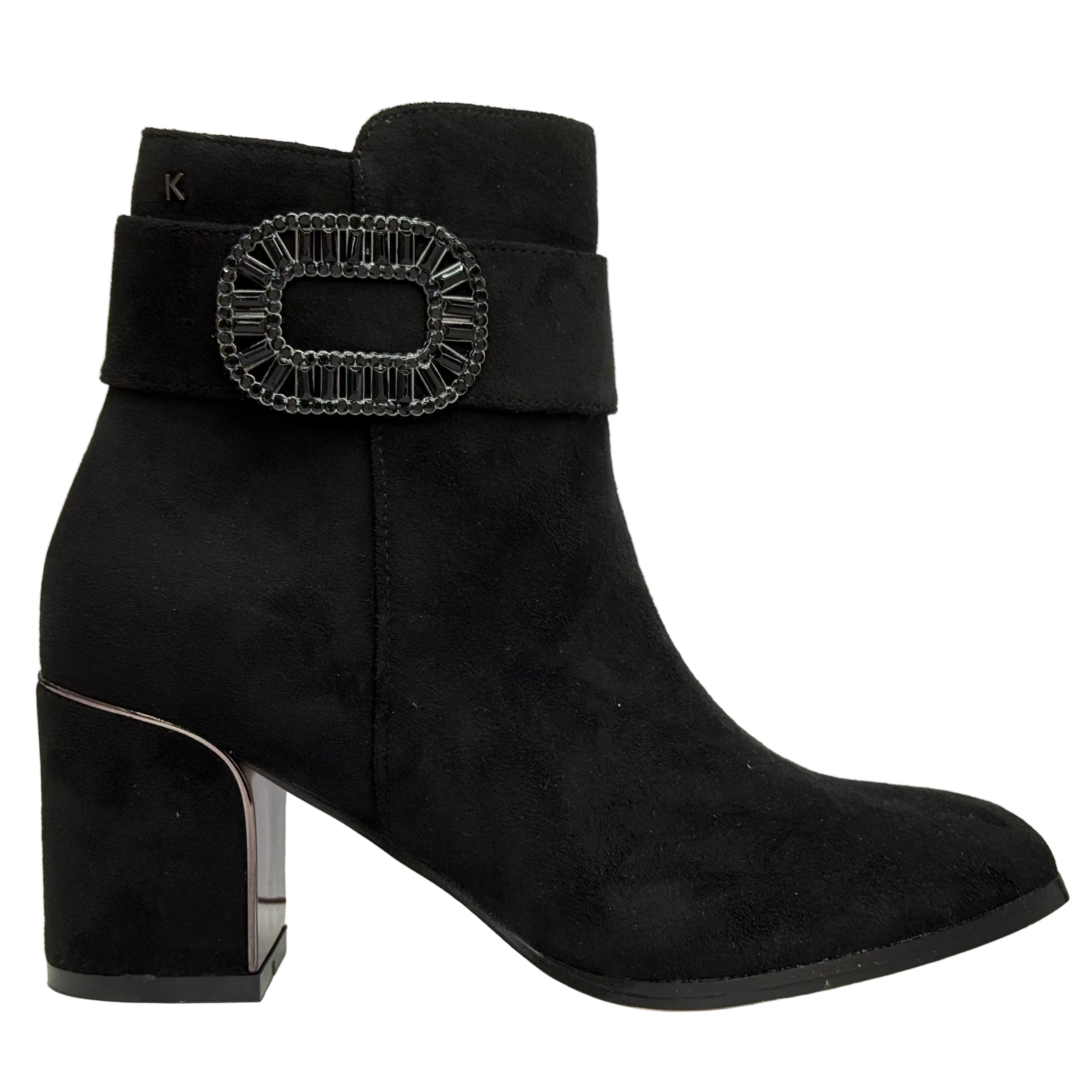 Step out in style with the Kate Appleby Womens Wadeland Ankle Boot, crafted from soft suedette in a classic black. Slip them on easily thanks to the handy side zip, while a bold buckle adds a fun finish. The sturdy block heel keeps you comfortable and confident all day long.