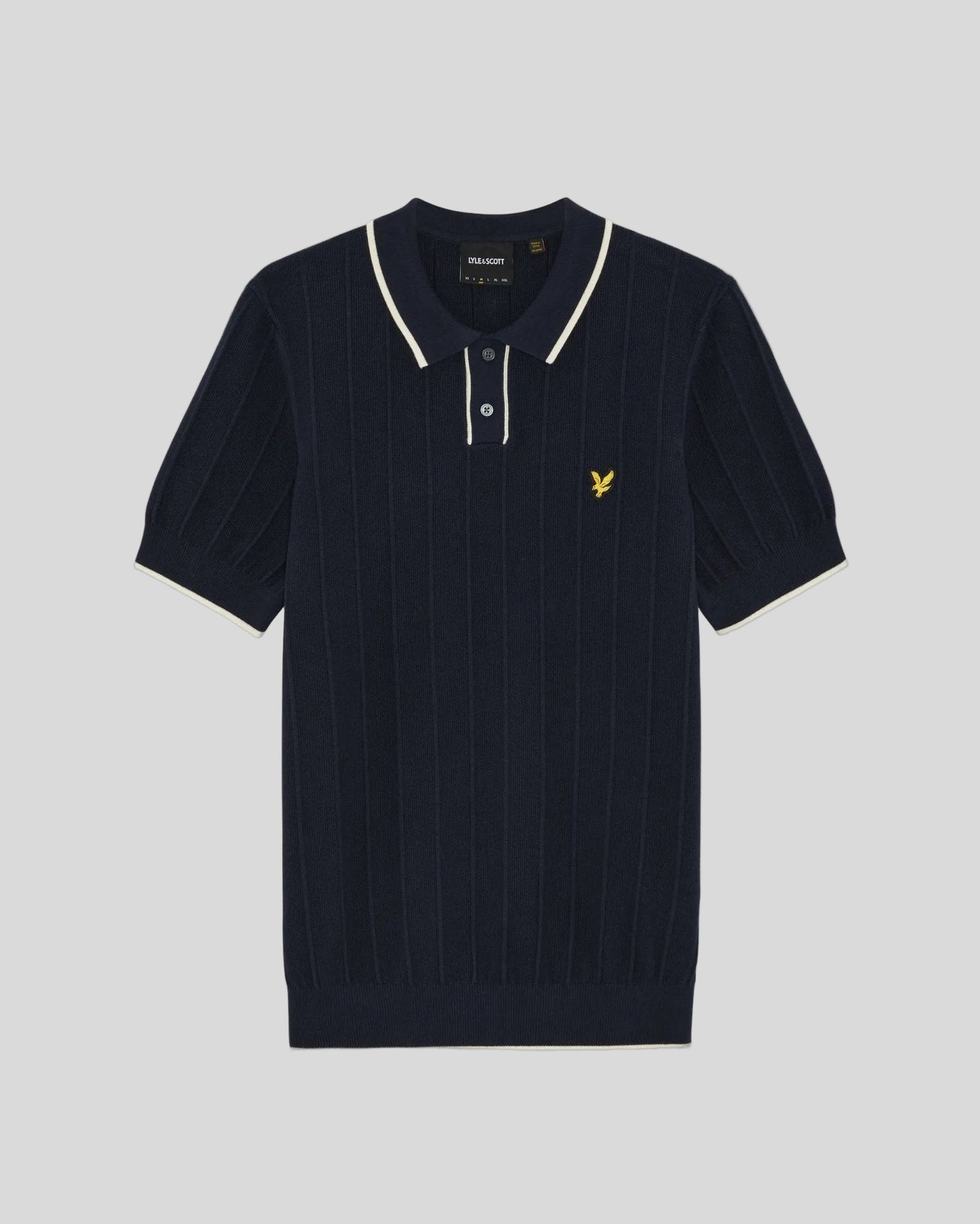 Lyle & Scott Mens Tipped Pique Knitted Polo Shirt | Dark Navy