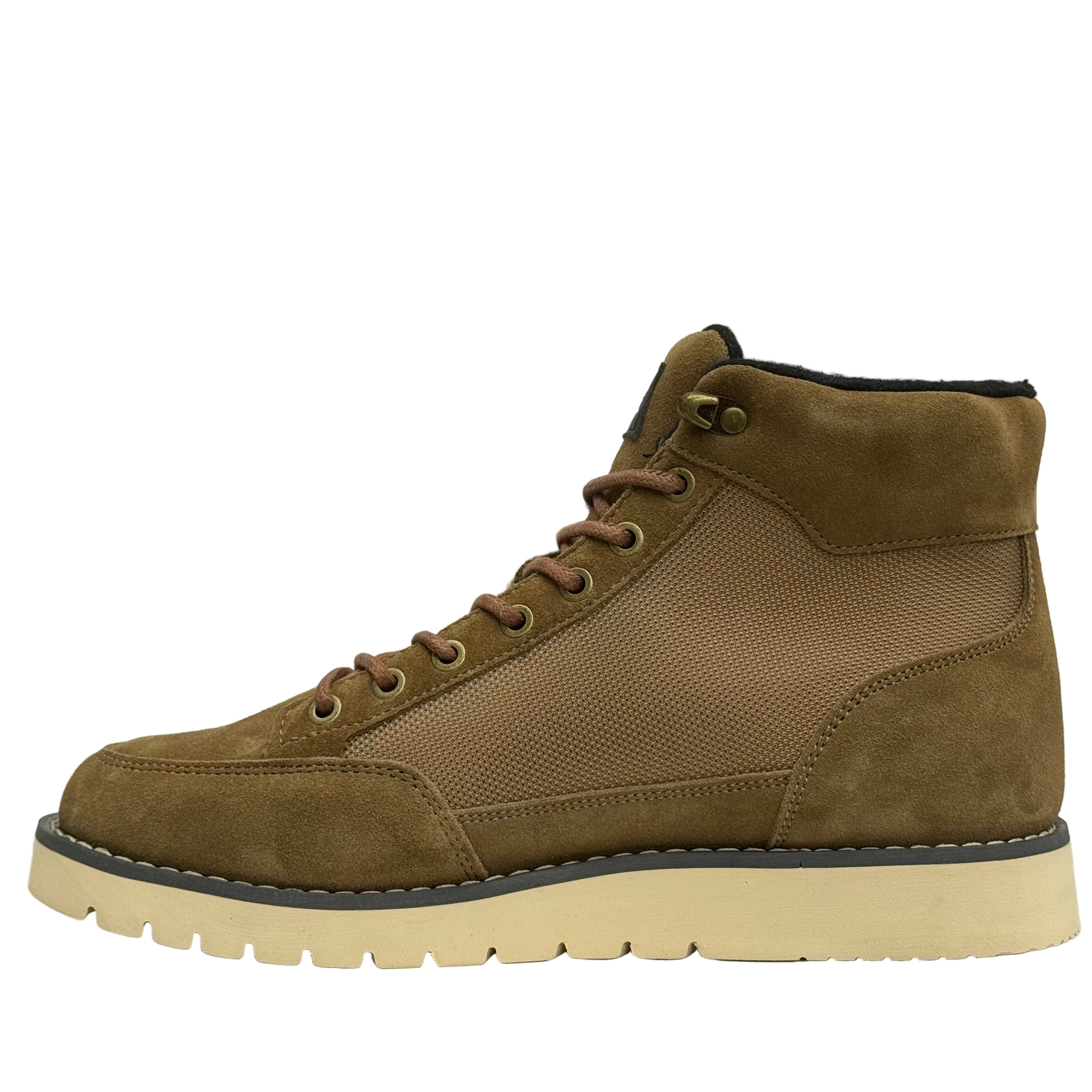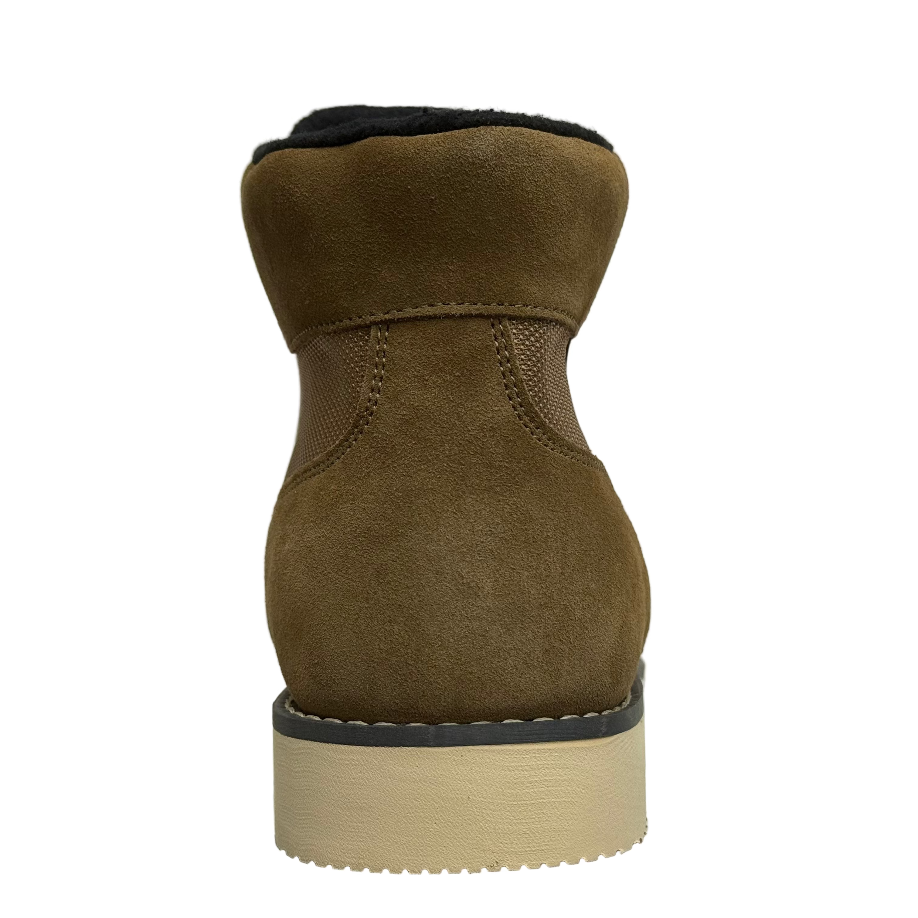 Rugged and versatile boots, perfect for both outdoor adventures and urban style. Made from suede leather with technical fabric inserts, they offer durability and comfort. Dark laces and metal eyelets reinforce the classic hiking-inspired design, while the thick, cushioned sole ensures stability and grip across different terrains.