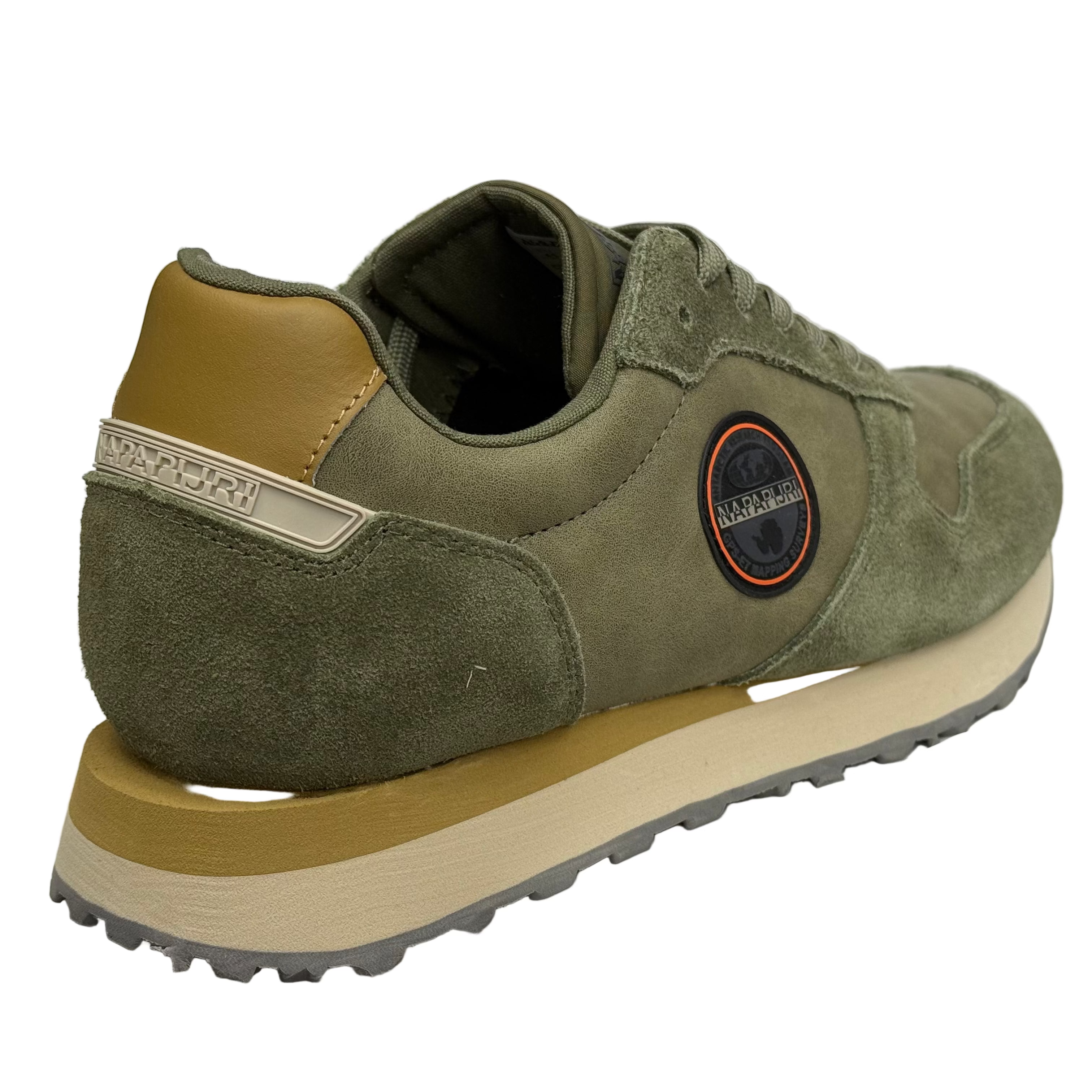 Vintage-style running sneakers featuring the iconic tonal Napapijri patch on the side. The upper, made from suede and breathable nylon, offers all-day comfort. A lightweight, cushioned microporous midsole combined with a rubber tread ensures durability and grip—perfect for a casual and comfortable look.