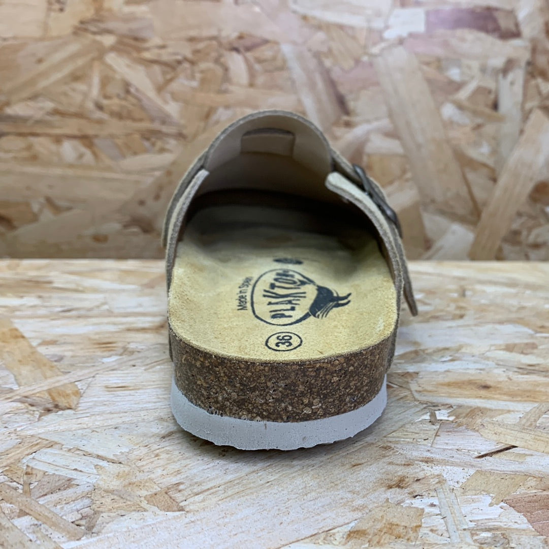 The Plakton Womens Gibraltar Mule in Mushroom coloured Leather features a memory cushion footbed. Adjustable buckle fastening strap across the bridge of the foot to allow for a more perfect fit.