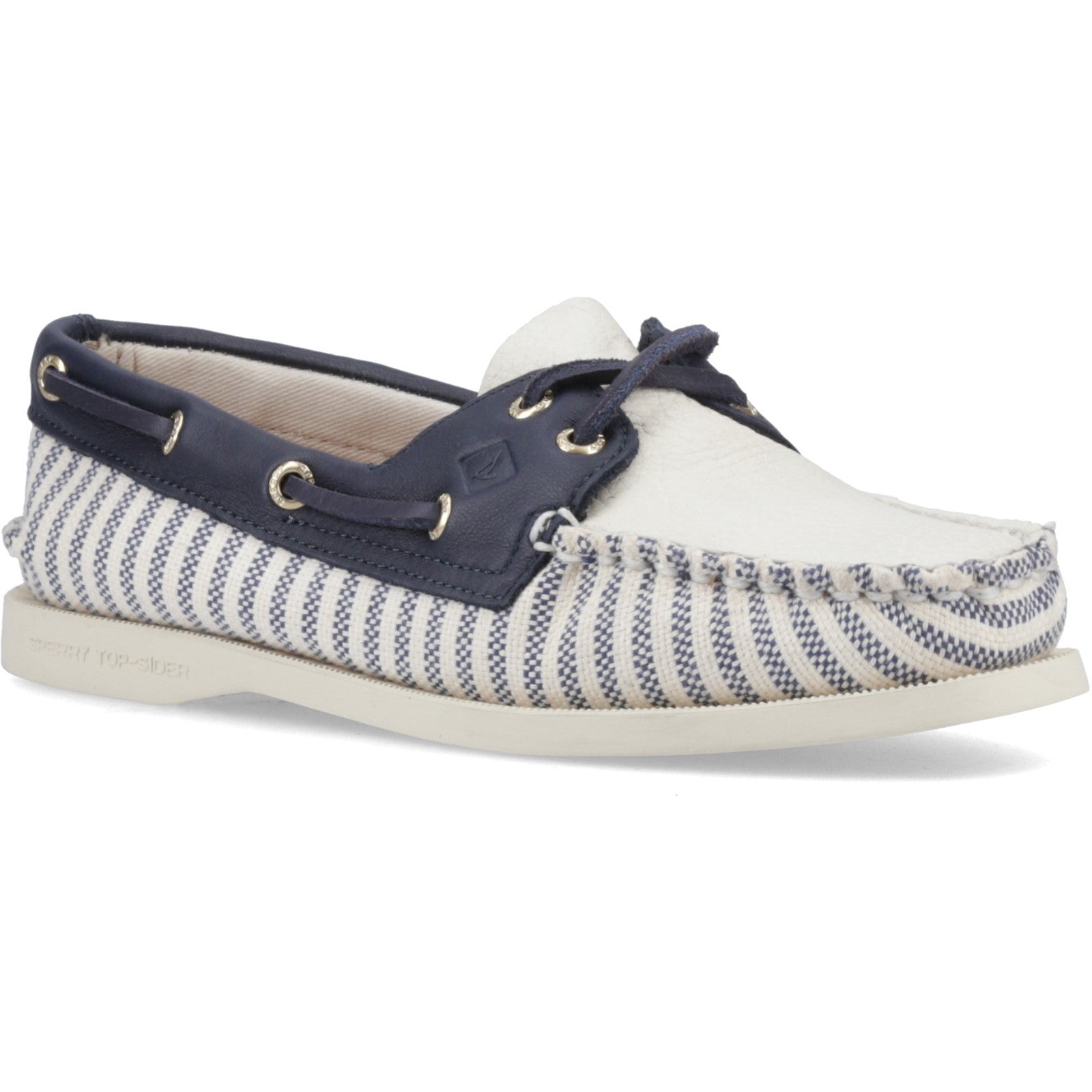 Sperry Womens Port Driving Moccasin Shoe | White Navy